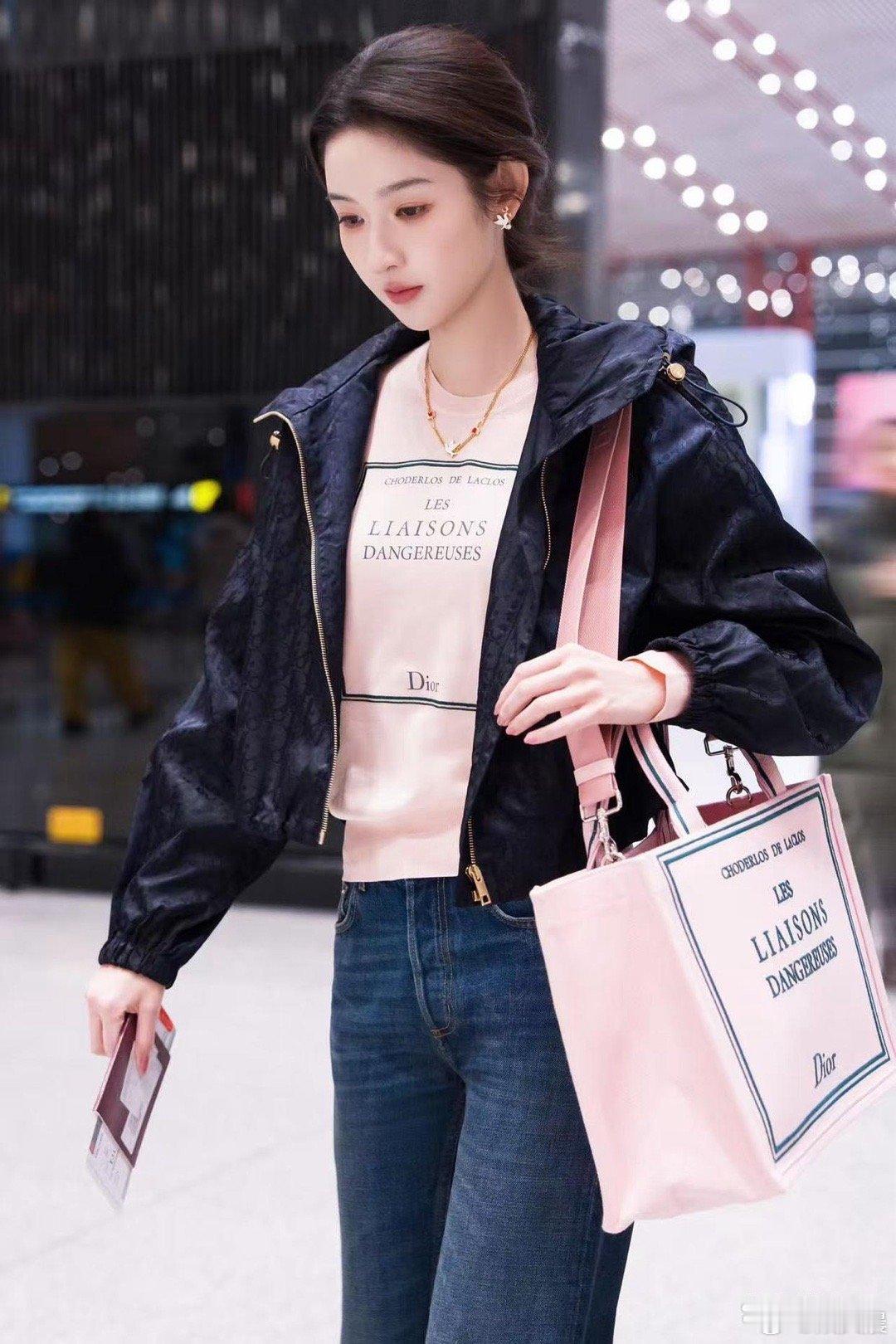 王玉雯机场私服太会穿!短外套叠搭粉色T恤配牛仔裤,减龄又不失高级感,时髦度拉满~