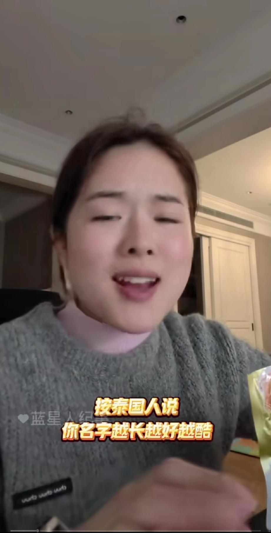 一位泰国美女发了一个奇怪的视频,她说中国人一点都不酷,原因让中国人无语!她在视频里是这样说的: “一开始我觉得中国人一点都不酷!因为按泰国人的说法,你的名字越长才越酷,嗯!好酷啊!如果问你叫什么名字,叫何并杰!太短了,一点都不酷,你要叫‘班长叫班长了他怕他拿着了弄的’(泰语音译),那就很酷的!” 原来泰国人是以名字的长度为荣的,名字越长别人就觉的你越神秘莫测,就认为你有魅力!这长长的名字要是放到中国八成会成为大家取笑的对象!