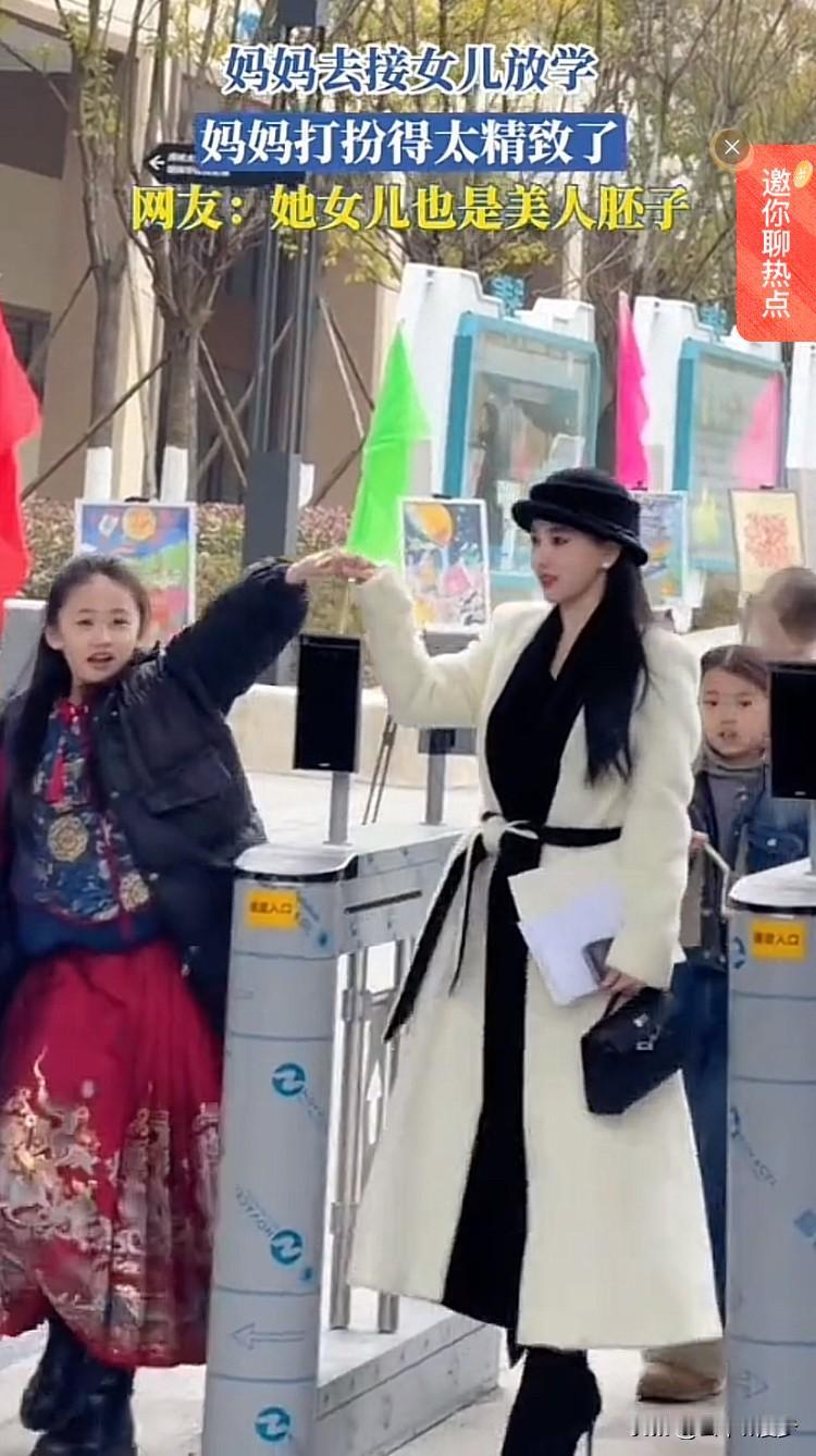 贵州一位妈妈出席女儿的家长会,因精致亮眼的装扮与出众的颜值,意外走红网络,引发网友广泛关注和暖心热议。 网传视频里,这位妈妈状态绝佳,看着格外年轻貌美,一身穿搭更是尽显精致优雅的气质:头上戴着一顶设计感满满的时尚帽子,一袭简约大气的白色风衣衬得身姿挺拔,脸上化着清透精致的妆容,一举一动都自然大方。她牵着女儿的手缓步走进校园,画面温馨又养眼;身旁的女儿昂首挺胸,眉眼间满是藏不住的自豪与开心,能看出因有这样的妈妈而格外骄傲。 这份亮眼的亮相,没有引来丝毫非议,反倒收获满屏夸赞,网友们纷纷感慨“妈妈精致的样子,就是给孩子最好的底气”,还有人表示,妈妈对自身形象的用心打理,不仅是对生活的热爱,更是给孩子树立了美好的榜样,让孩子在自信与被羡慕的氛围里,收获了满满的幸福感。 高颜值的妈妈