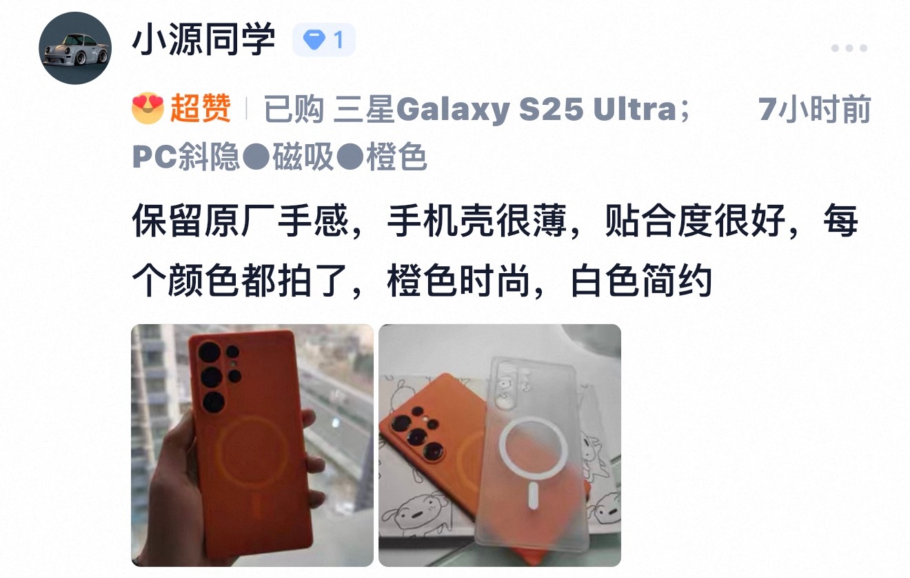 边框薄约 0.7mm 的三星 S25 Ultra PC 斜隐,确保了握持体验,不会增加过多宽度一体 PC 材质,斜纹纹理,简洁、耐看。