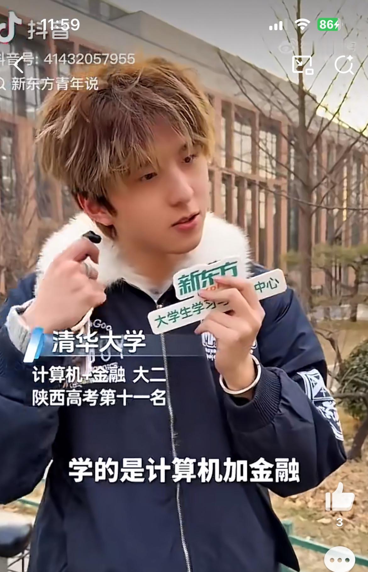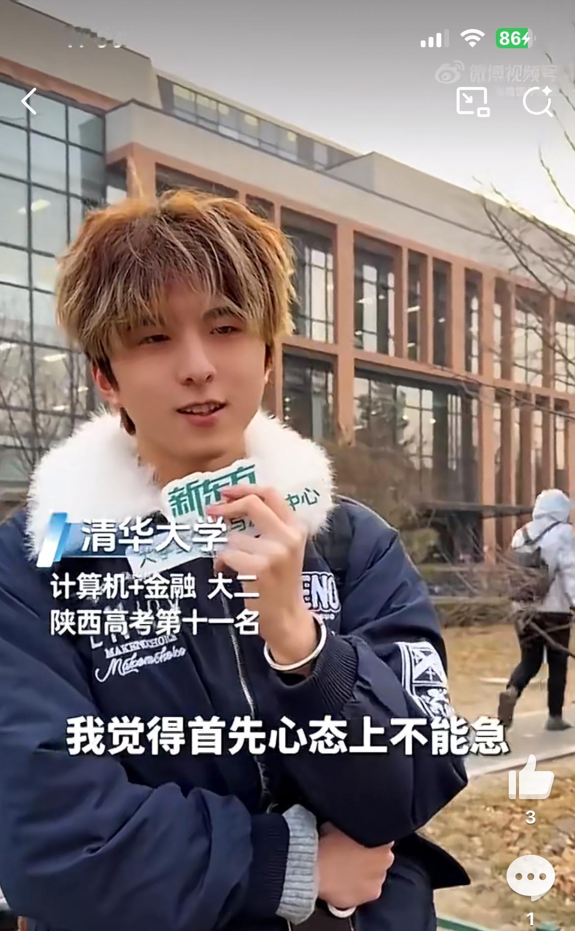 一头黄毛的清华学霸,712分考入清华金融和计算机专业就读。和以往那些木讷、朴素、不修边幅的清华理工学子完全不同,这个学霸阳光帅气,也不是死读书,生活、学习、爱情都平衡的很好。我觉得这样的才是正常的,不要再去吹捧那些不食人间烟火的天才白痴,懂生活的人才能懂工作,才有创新和干劲。