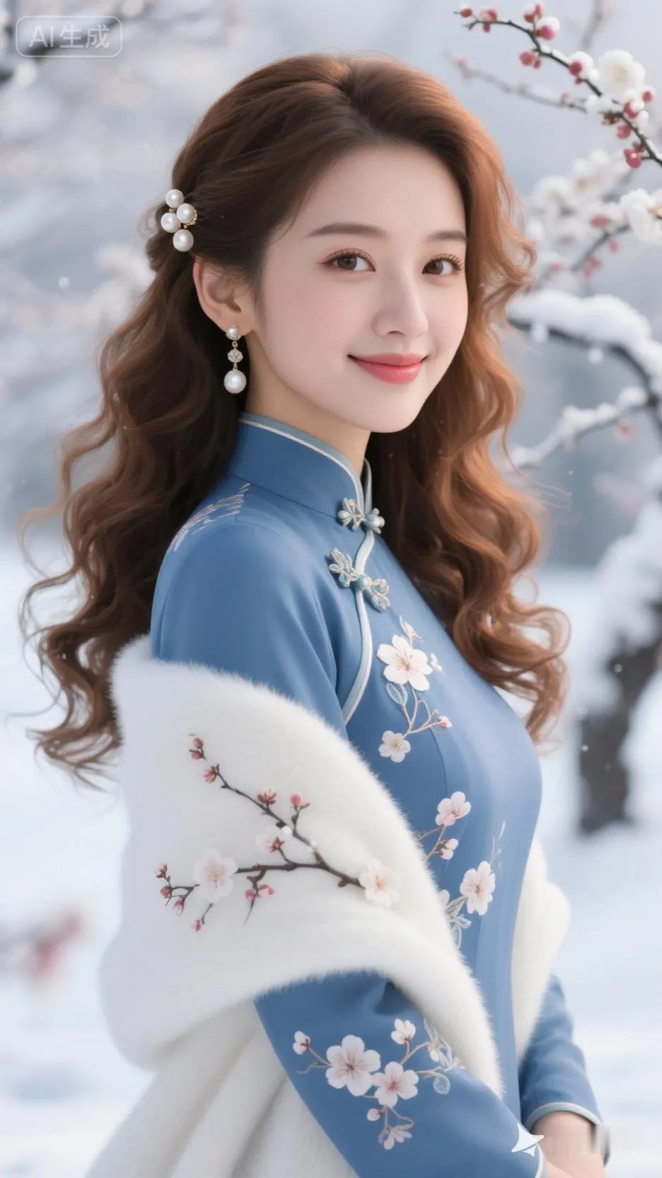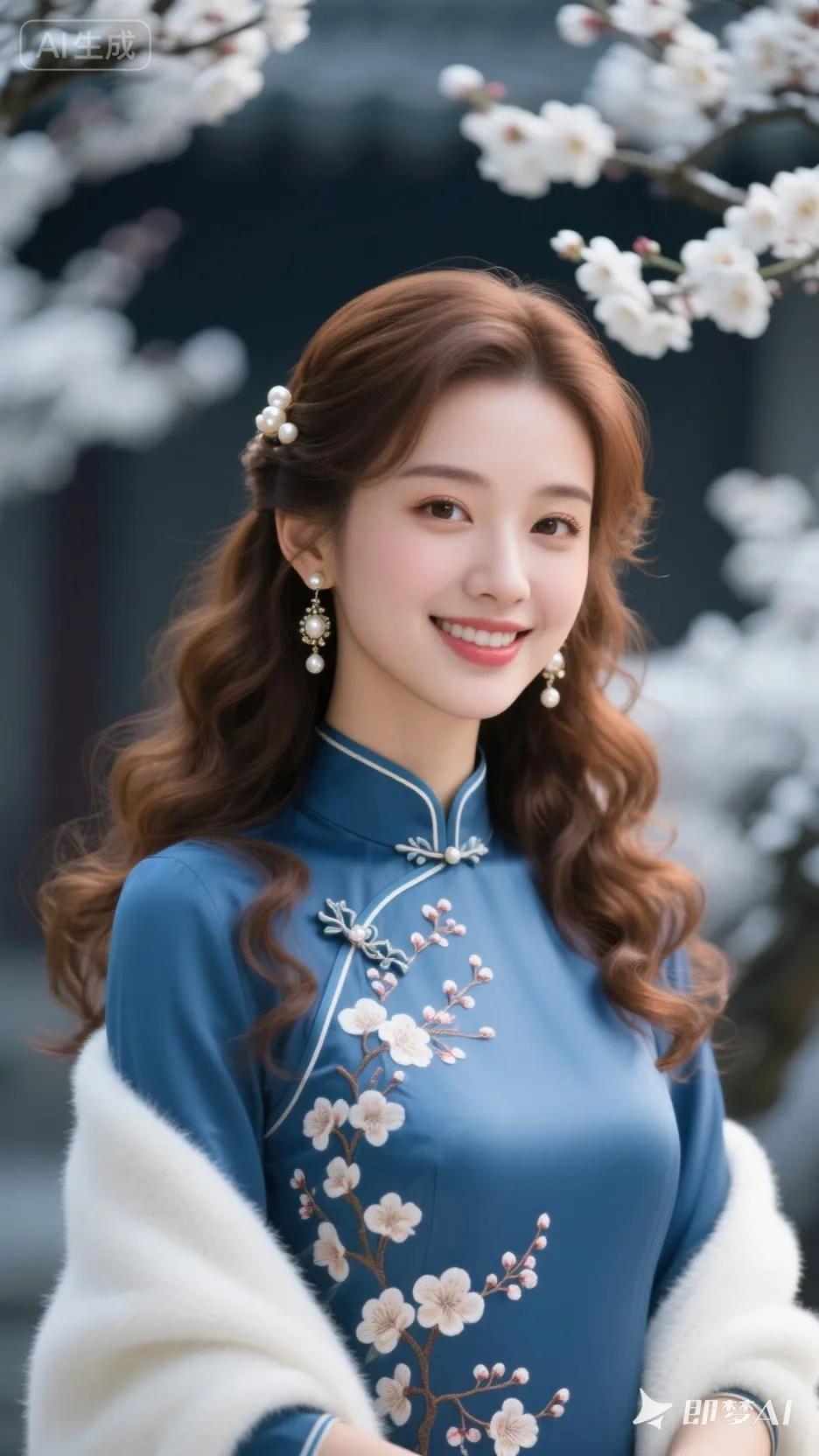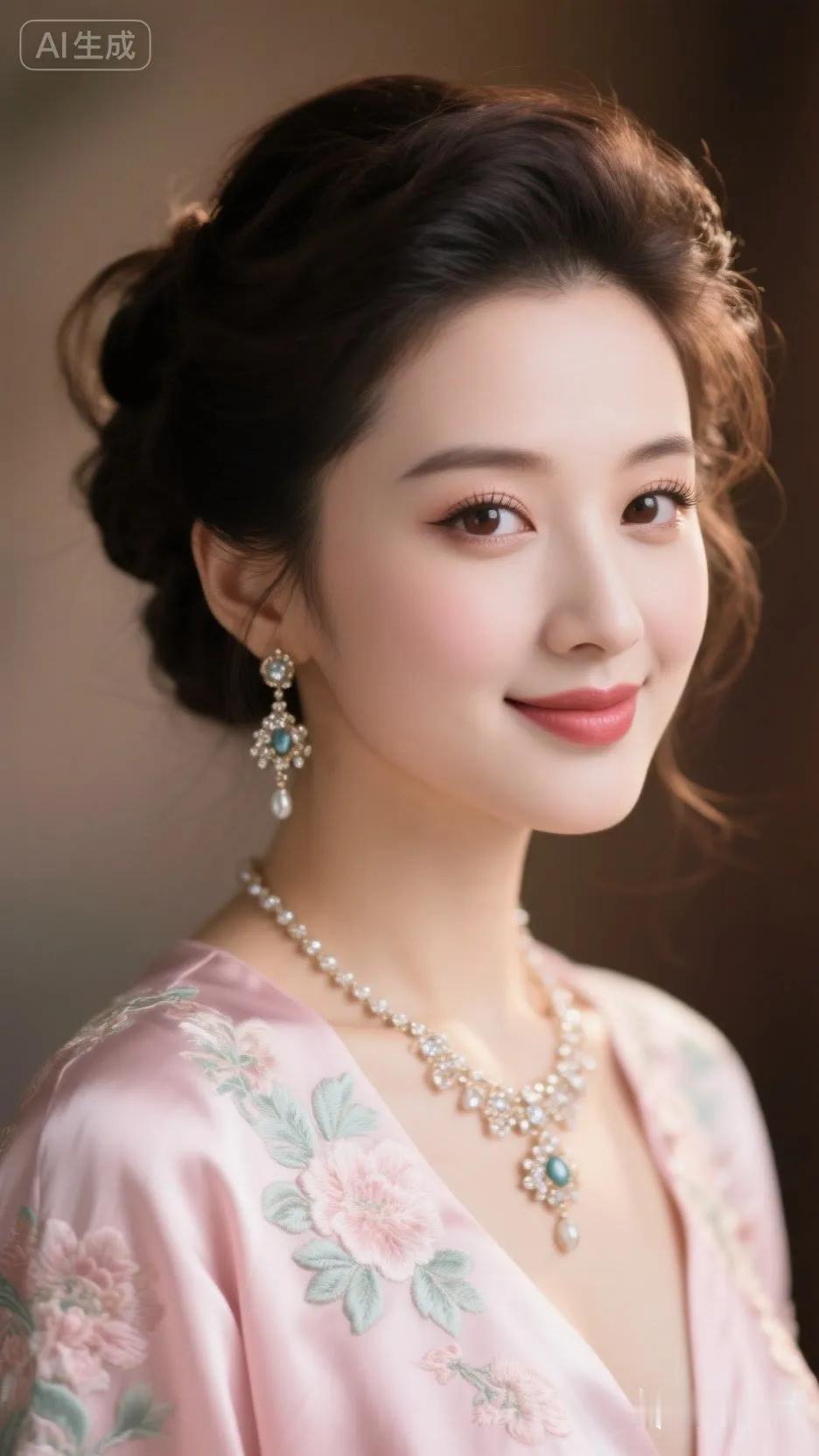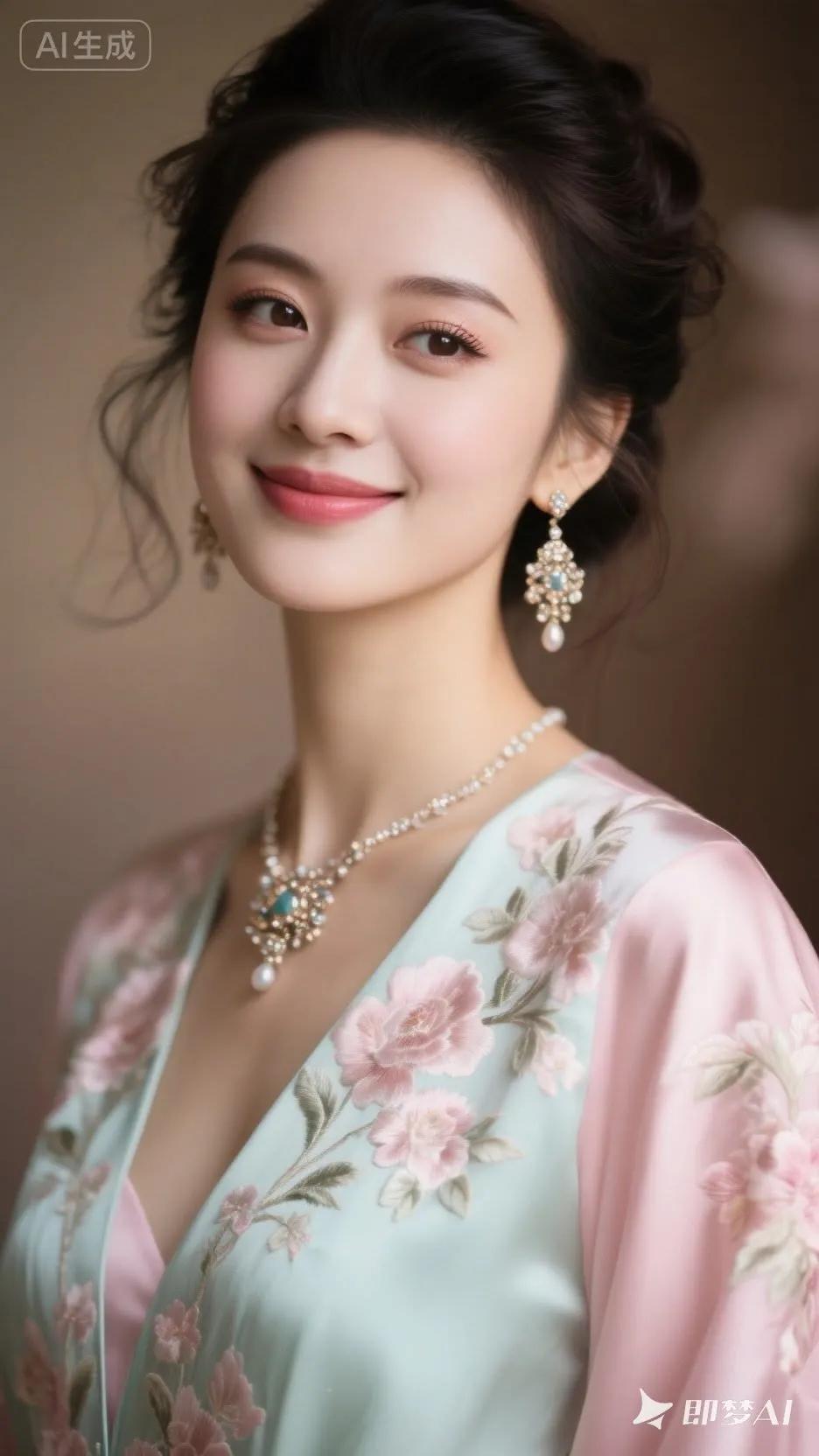 优雅气质,粉嫩花朵,珍珠项链,完美妆容,尽显东方美!