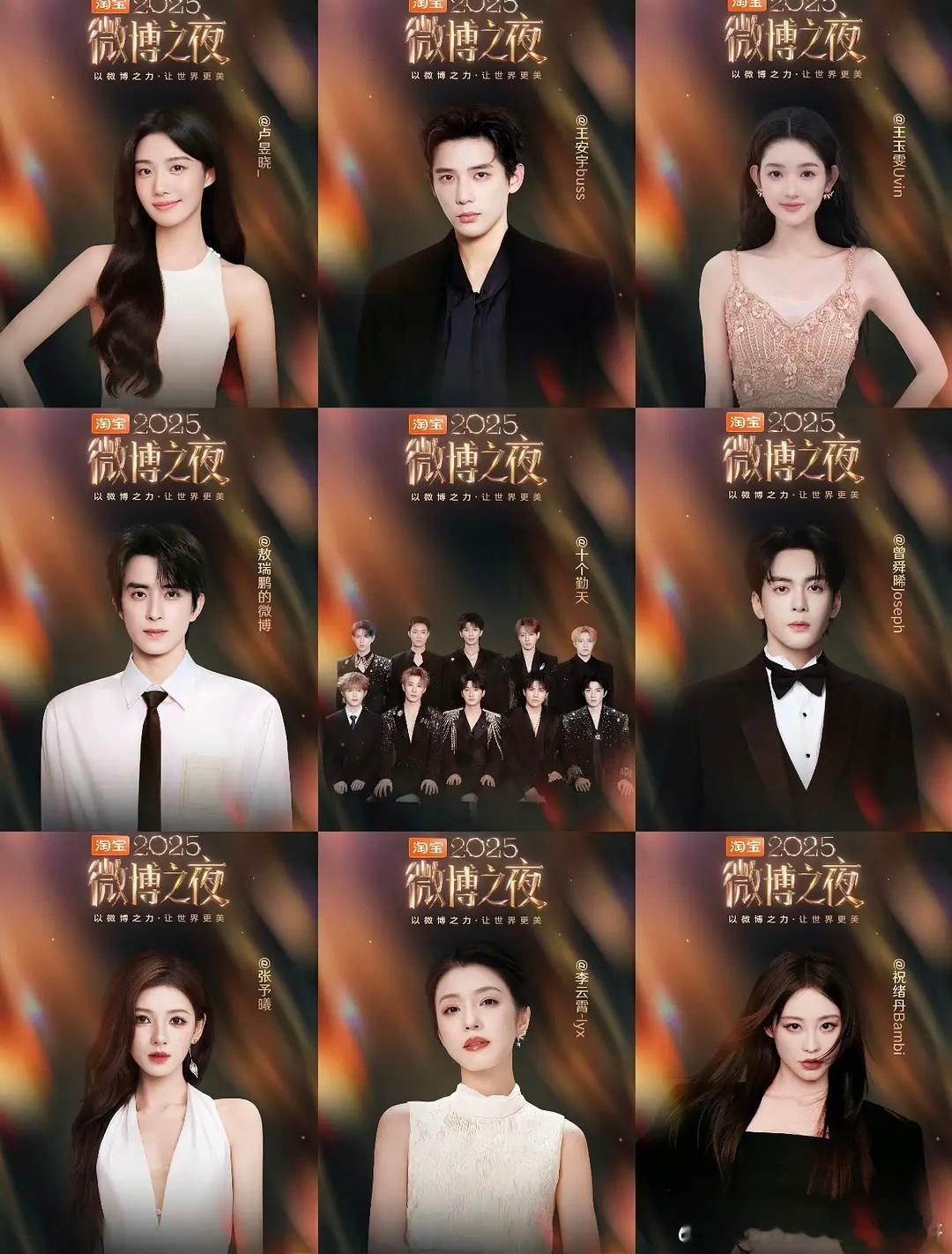 微博之夜新一批官宣阵容卢昱晓 王安宇 王玉雯 敖瑞鹏 曾舜晞 张予曦 李云霄 文淇 十个勤天等