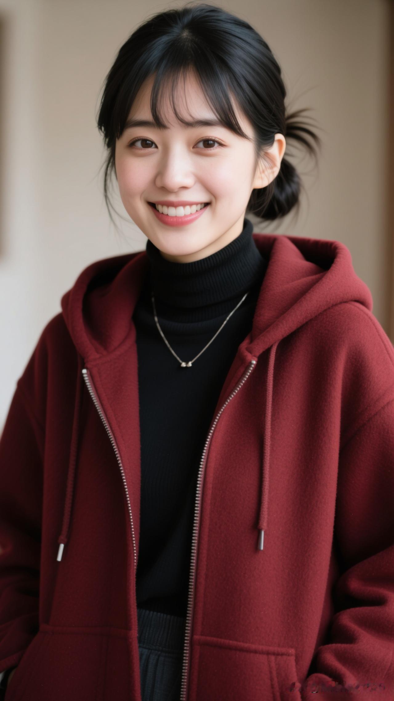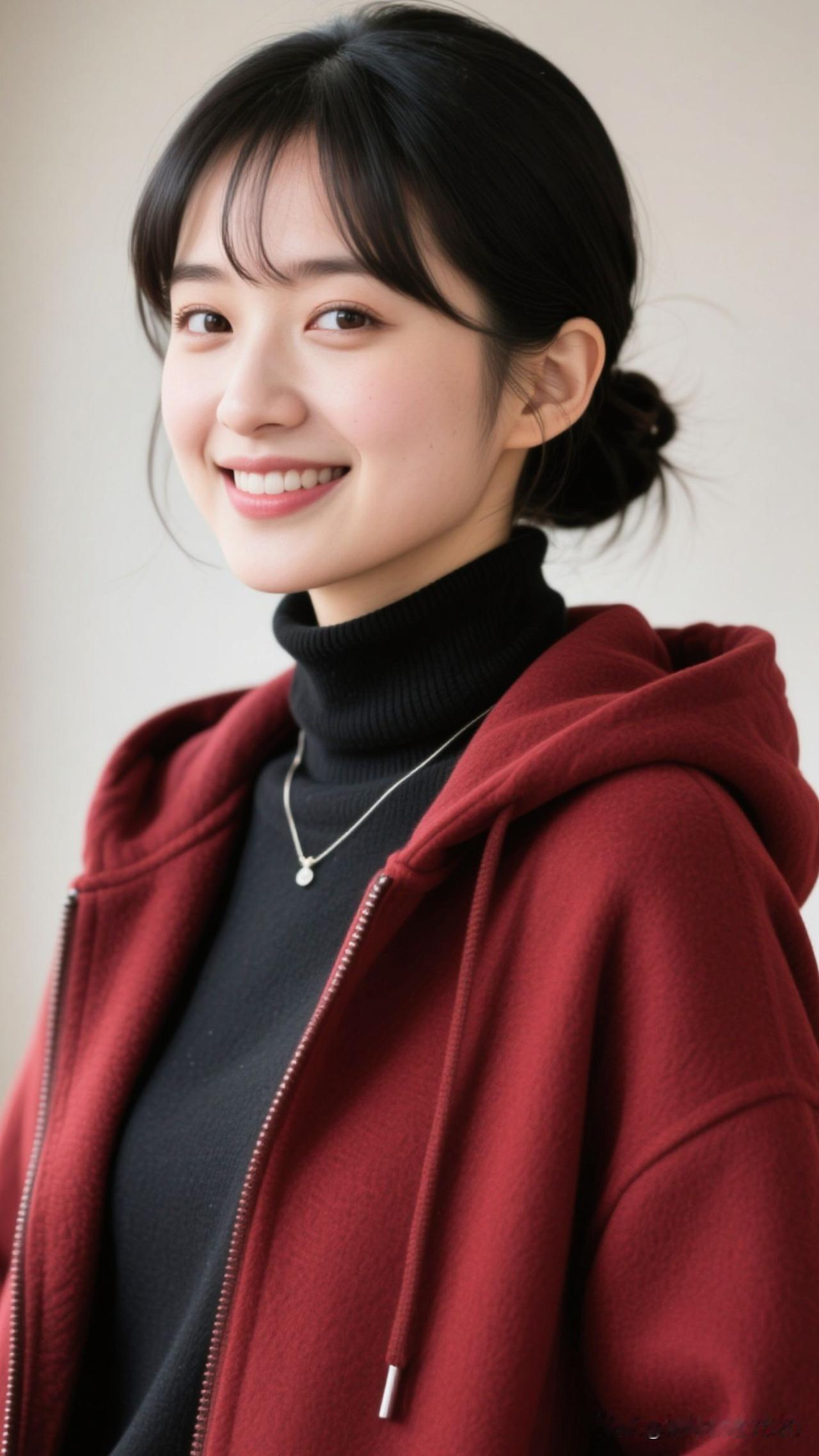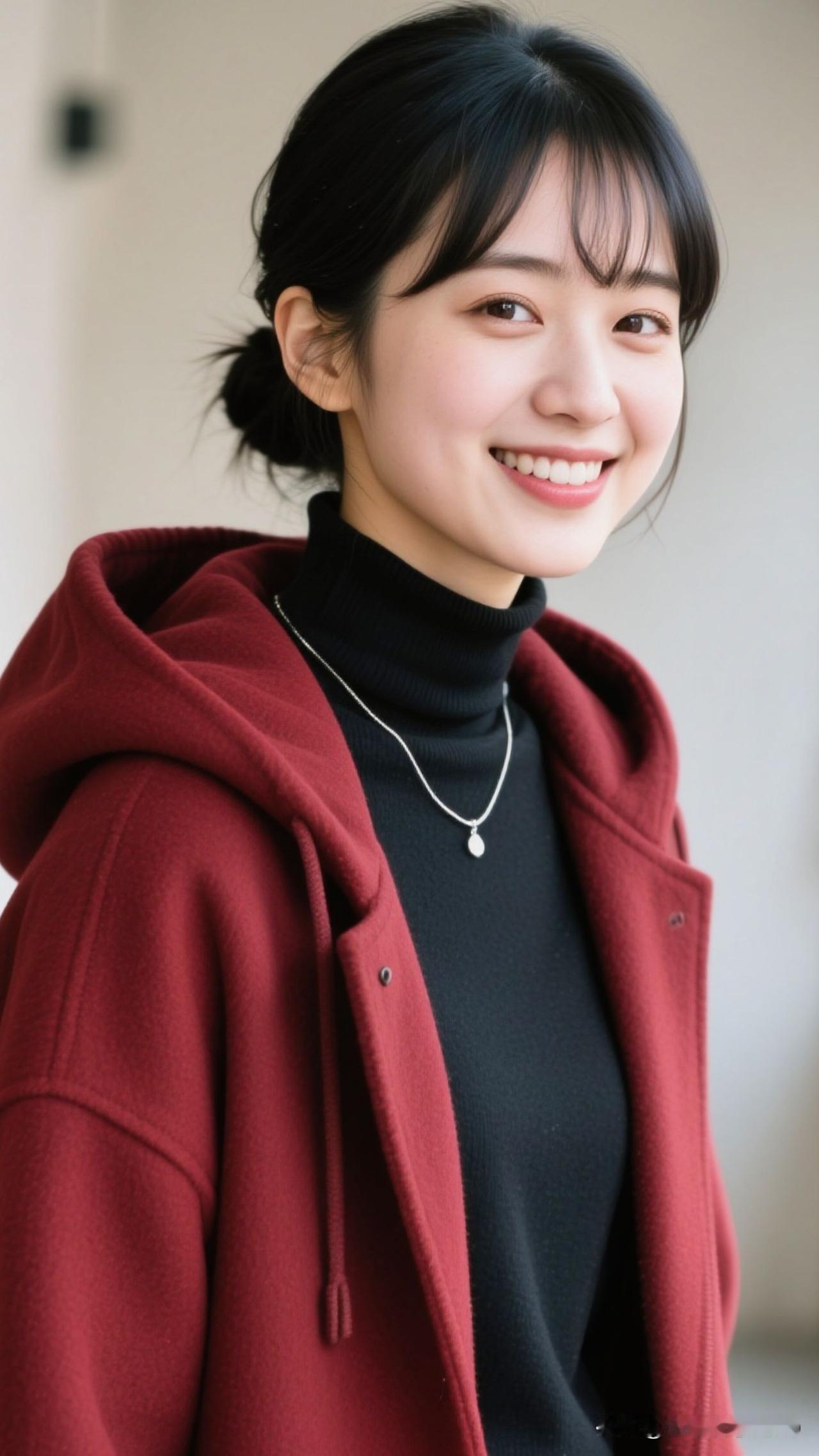 🌹 酒红针织织进黄昏的柔,珍珠耳坠曳着街道的光,连风都浸着浪漫的甜。紫色珍珠耳