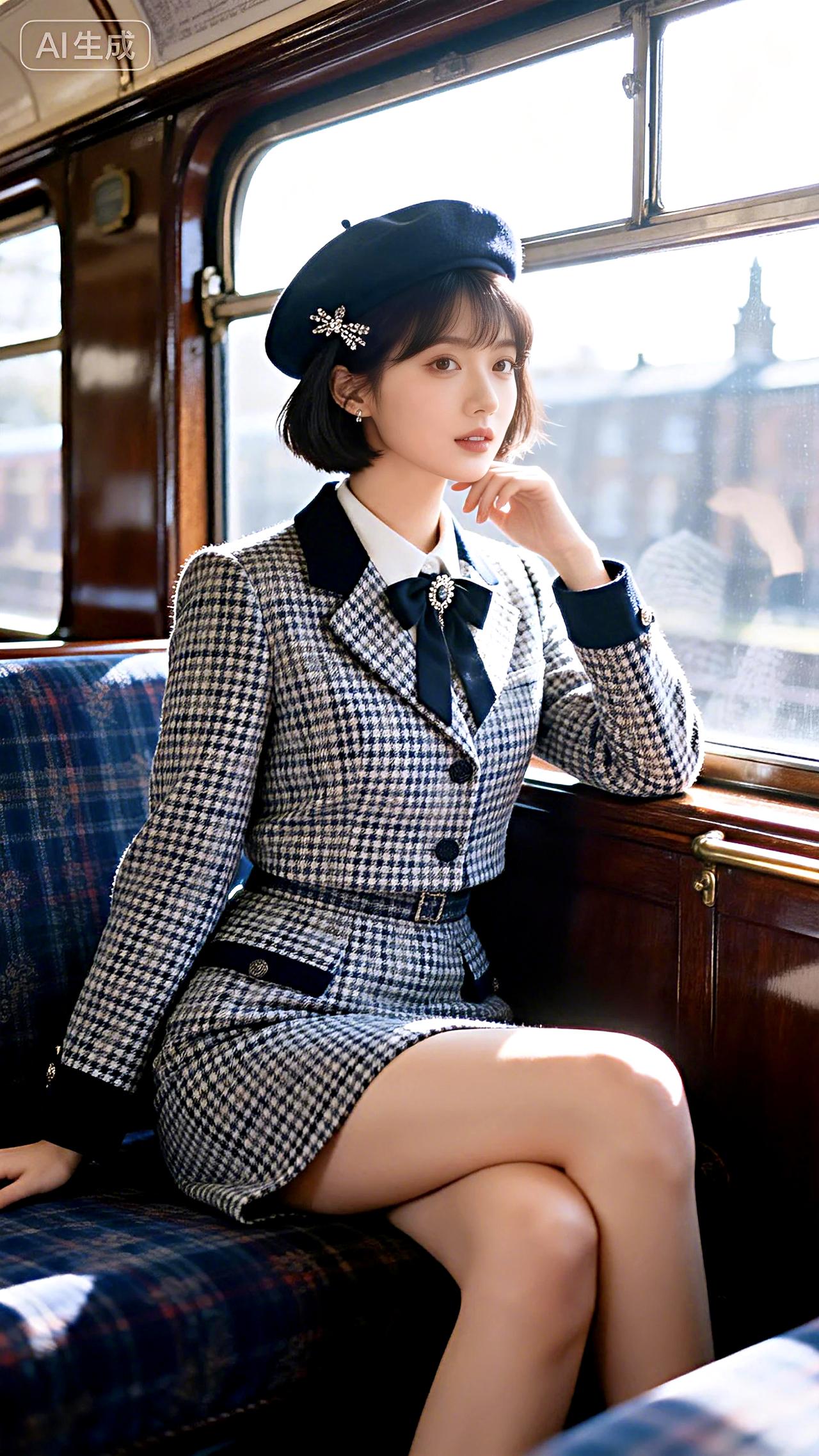 格纹窗外流光逝,凝眸一瞬驻年华。豆包壁纸