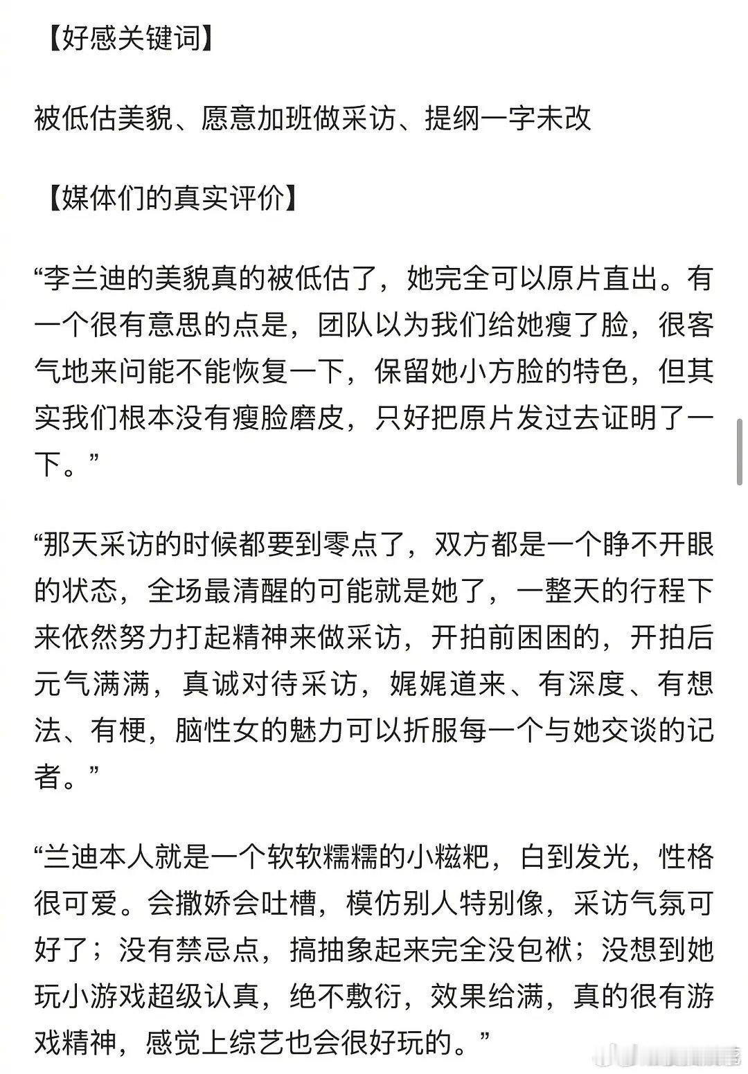 看了媒体采访感觉李兰迪性格很好啊 谁天天黑她脾气差的是对自己的工作人员和媒体都很好的小女孩,性格好又很会表达,被综艺切片黑了好久
