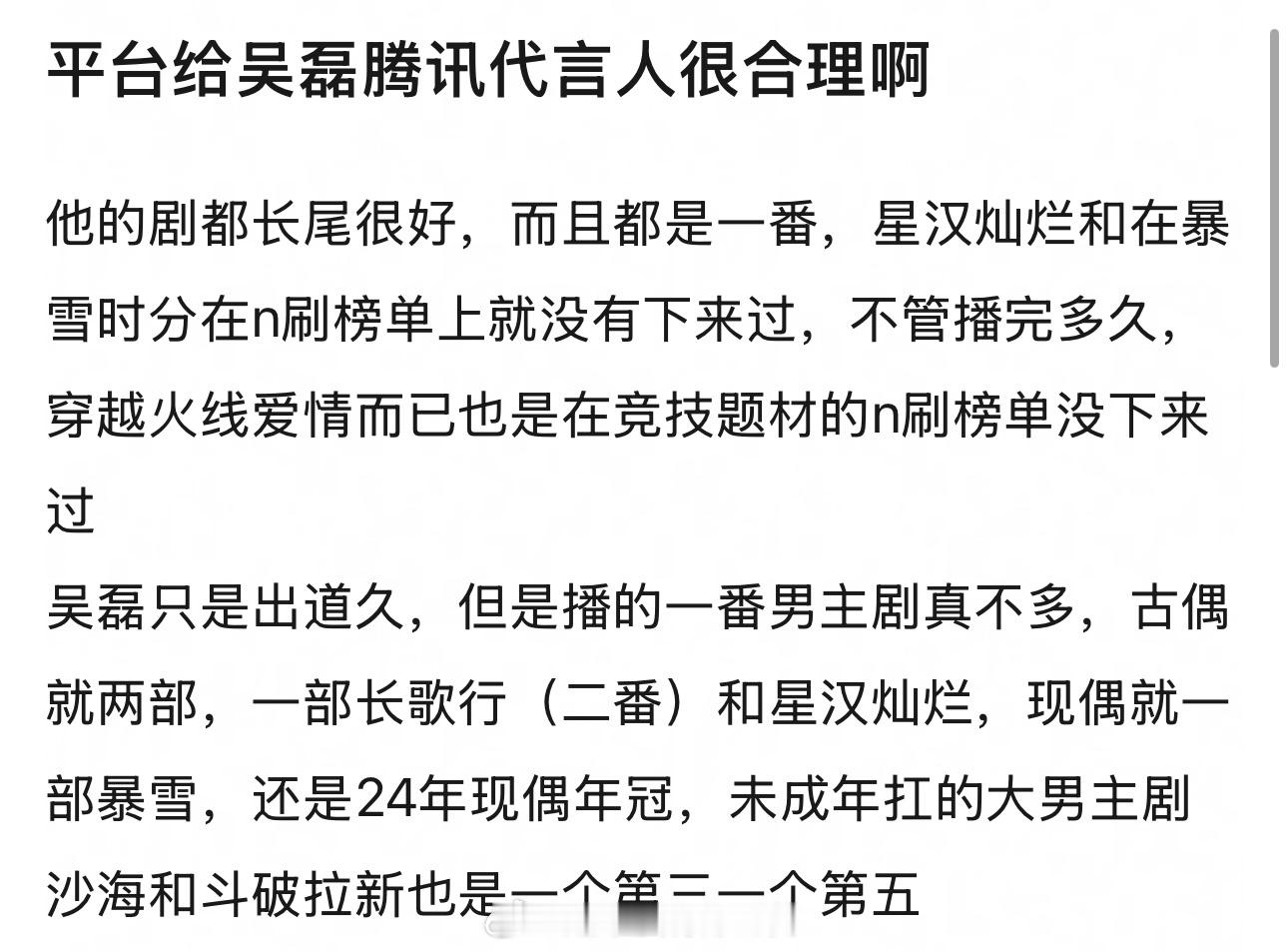 平台不会有无缘无故的爱,吴磊伟大给🐧赚钱具象化了