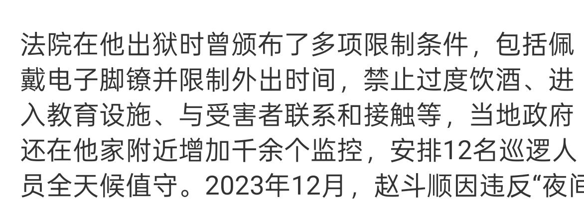 《素媛》这部韩国电影应该都看过吧 该电影是按真实事件拍的,2008年12月,时年56岁的赵斗顺绑架性侵8岁女童致其终身残疾,法院以“案发时嫌犯饮酒致使精神错乱,无正常行为能力”判其12年有期徒刑。 而案发前,赵斗顺就已经有过18次犯罪记录,包括性侵、盗窃和勒索等。 2020年12月,赵斗顺刑满释放后,韩国大众一直对他重返社会深感不安。 就在1月28日,这个赵斗顺又在上下学时无正当理由外出被捕,判了八个月。 这样的罪行都不能判死刑?留着不也是闹事么?