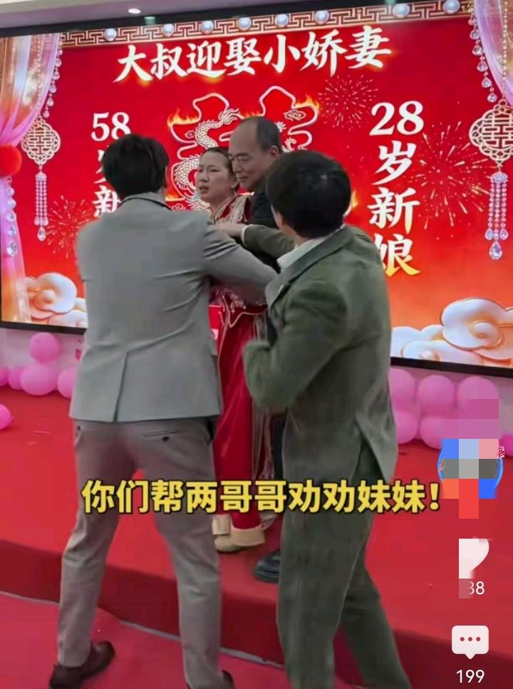 28岁姑娘嫁58岁大叔,婚礼现场俩哥哥崩溃抢人:“你图他啥?” 婚礼红毯上,