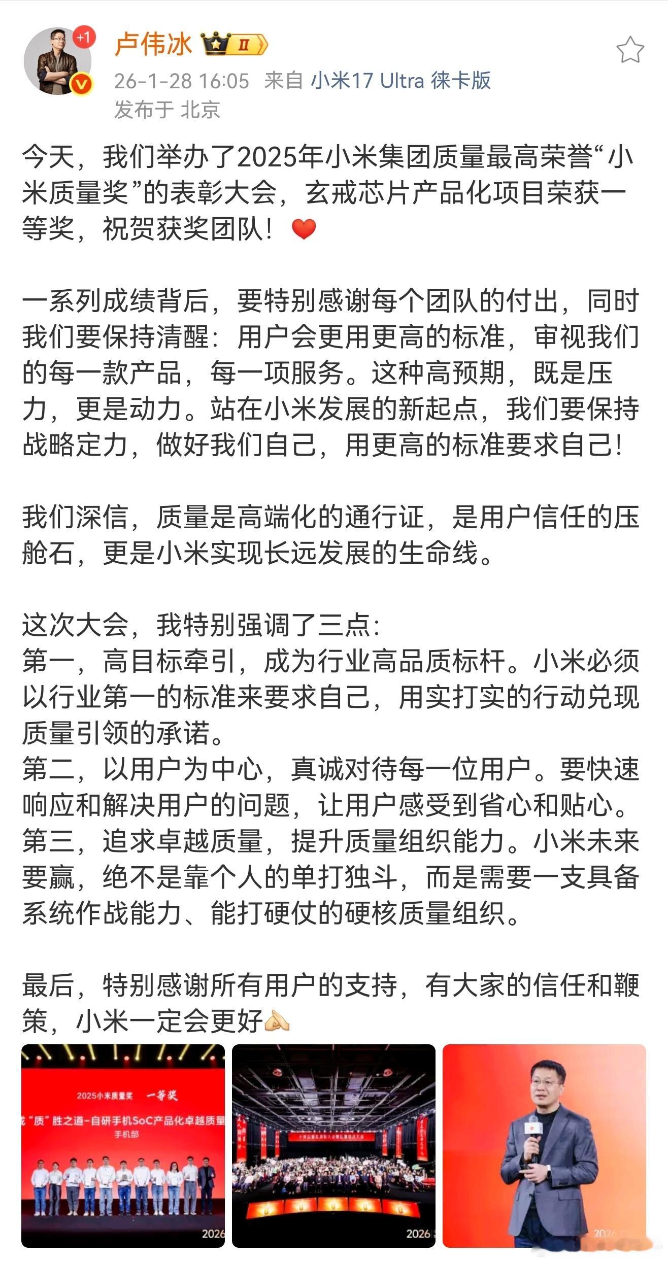 小米卢伟冰:必须以行业第一的标准来要求自己