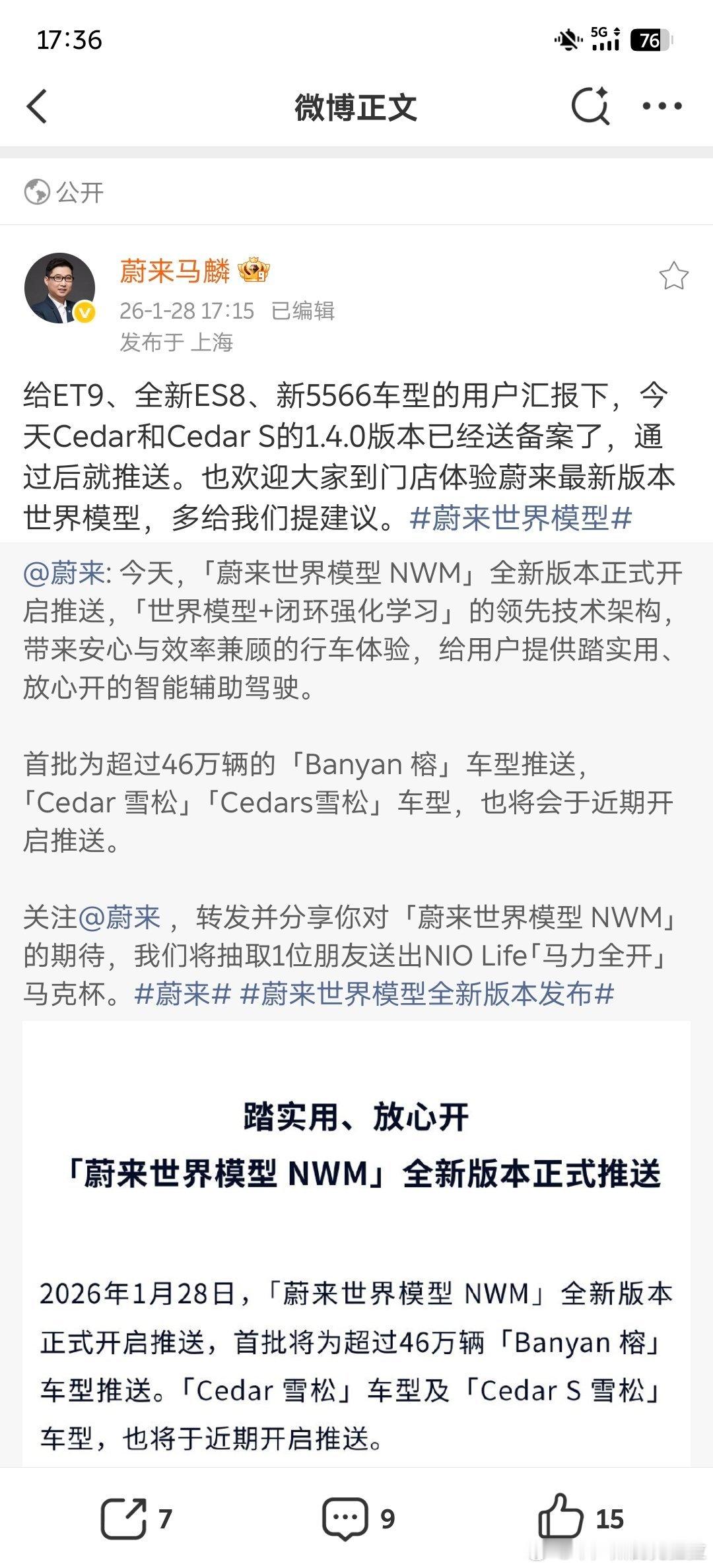 除了今天已经陆续开启推送的 Banyan3.3.0 系统版本,微博一手消息来自马老师Cedar/Cedar S 系统 1.4.0 版本已送相关部门备案各位 556689 看来可以🤗少羡慕几天兴奋根本止不住的 Banyan 用户们了我今天窜了八个群有余目前各个群里的精神状态宛如过年有着急下载慢了的有盯着安装进度条的还有已经上路开始冲的但目前无一差评
