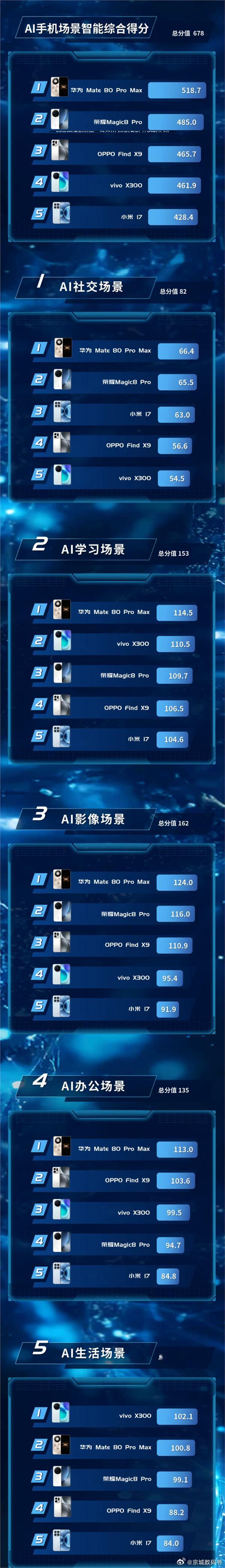 华为AI赢麻了,友商汗流浃背!!!刚看到电信发的报告,华为Mate80 Pro Max拿了 518.7分,直接断层第一!而且还直接包揽四大核心场景第一名,包括AI社交场景、AI学习场景、AI影像场景和AI办公场景…