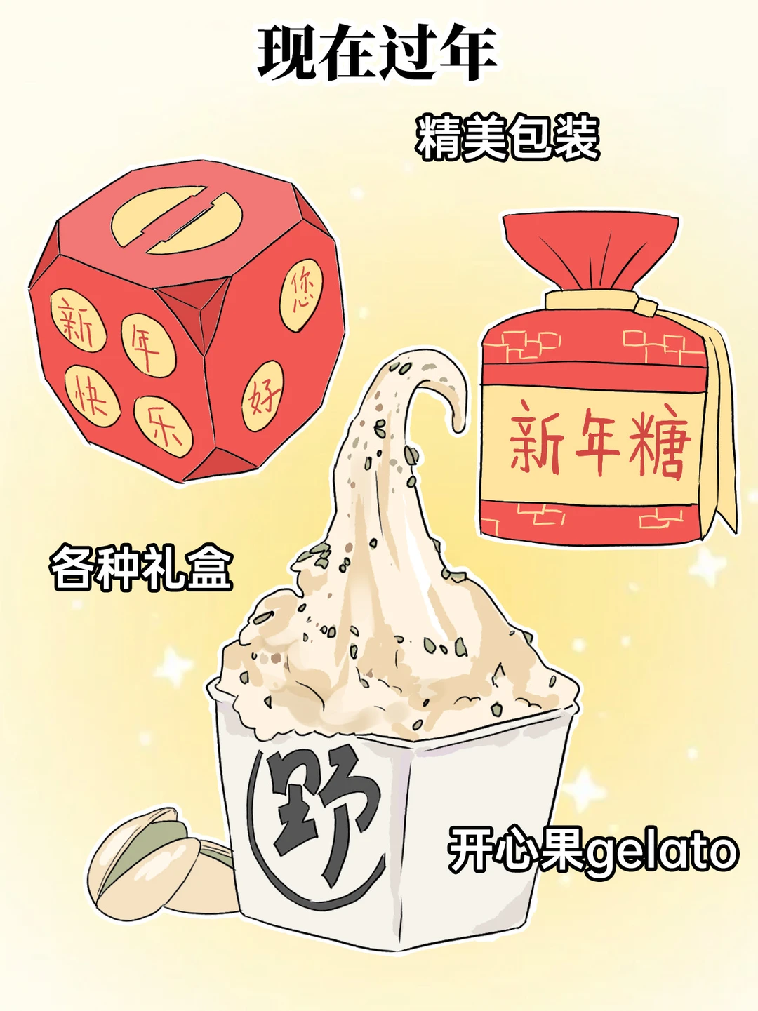漫画过年春晚办年货 当代女生过年现状 你是我的开心果 野人先生开心果冰淇淋 野人先生 广东野人先生