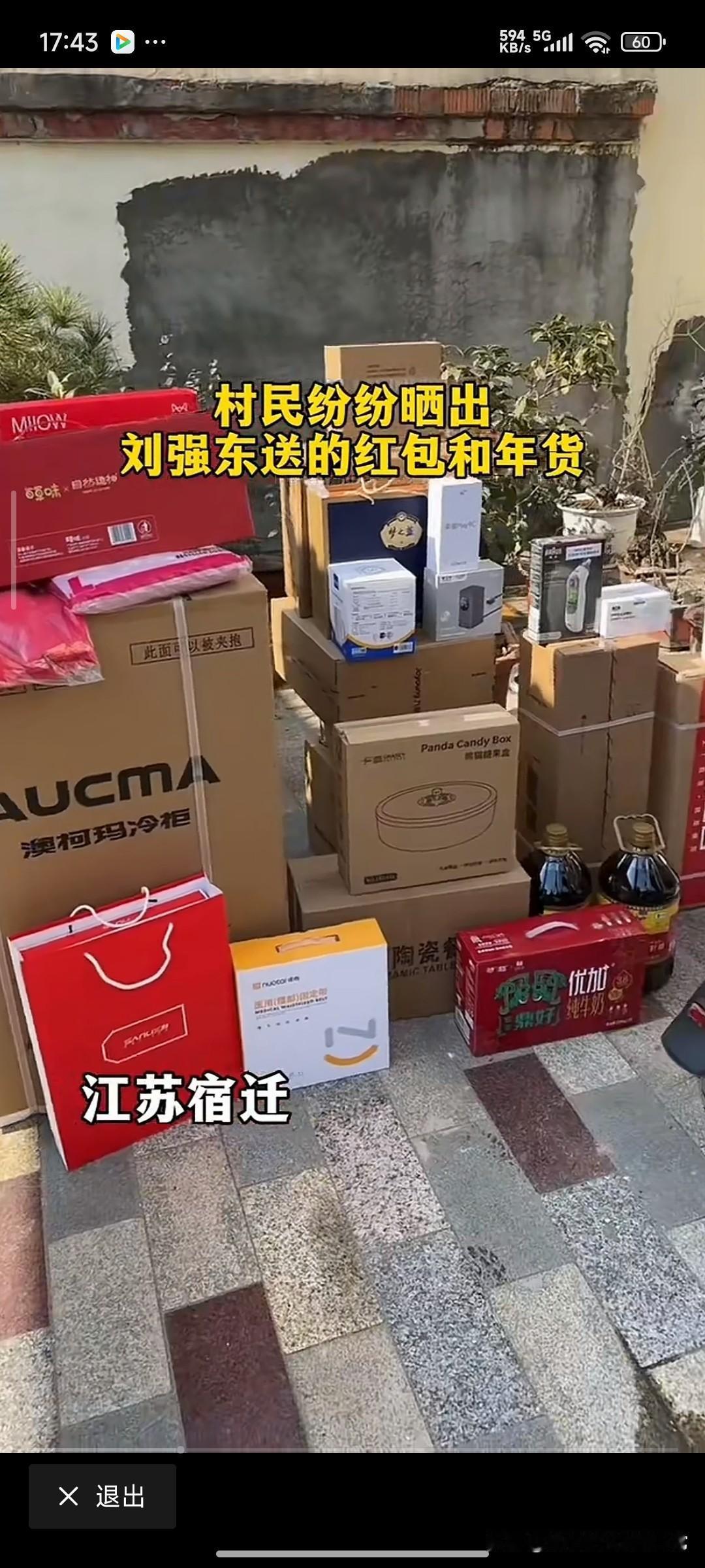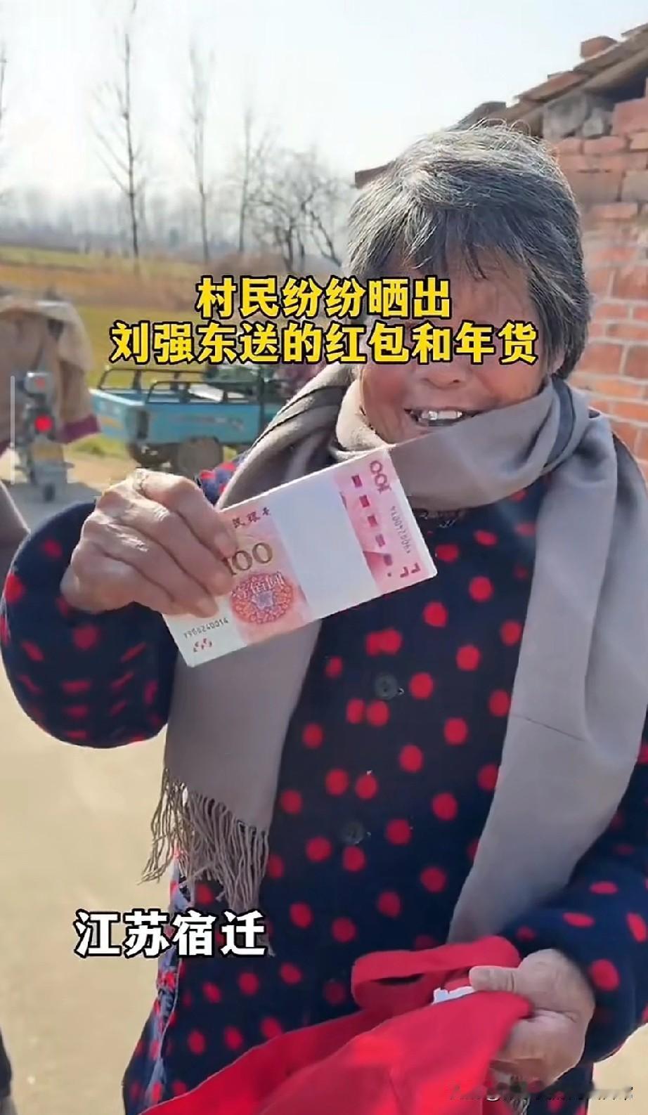 刘强东又让全国人酸了 谁看了不羡慕啊!江苏宿迁的村民们又晒出刘强东发的新年福利了——不仅有厚厚的现金红包,还有电动车、冷柜、米面油,甚至连零食大礼包都安排得明明白白。 大爷大妈们攥着红包笑得合不拢嘴,院子里堆成小山的年货箱更是让人眼红。有人说这是“炫富”,但我觉得这是刻在骨子里的乡情。刘强东每年雷打不动给乡亲们发福利,从现金到家电,从就业岗位到乡村建设,真正把“先富带动后富”落到了实处。 比起那些只会捐钱的企业家,他更懂老乡们需要什么。这样的“东哥”,难怪能被全网夸。话说回来,你们村有这么大方的老乡吗?评论区聊聊,让我也羡慕一下!💰🚛