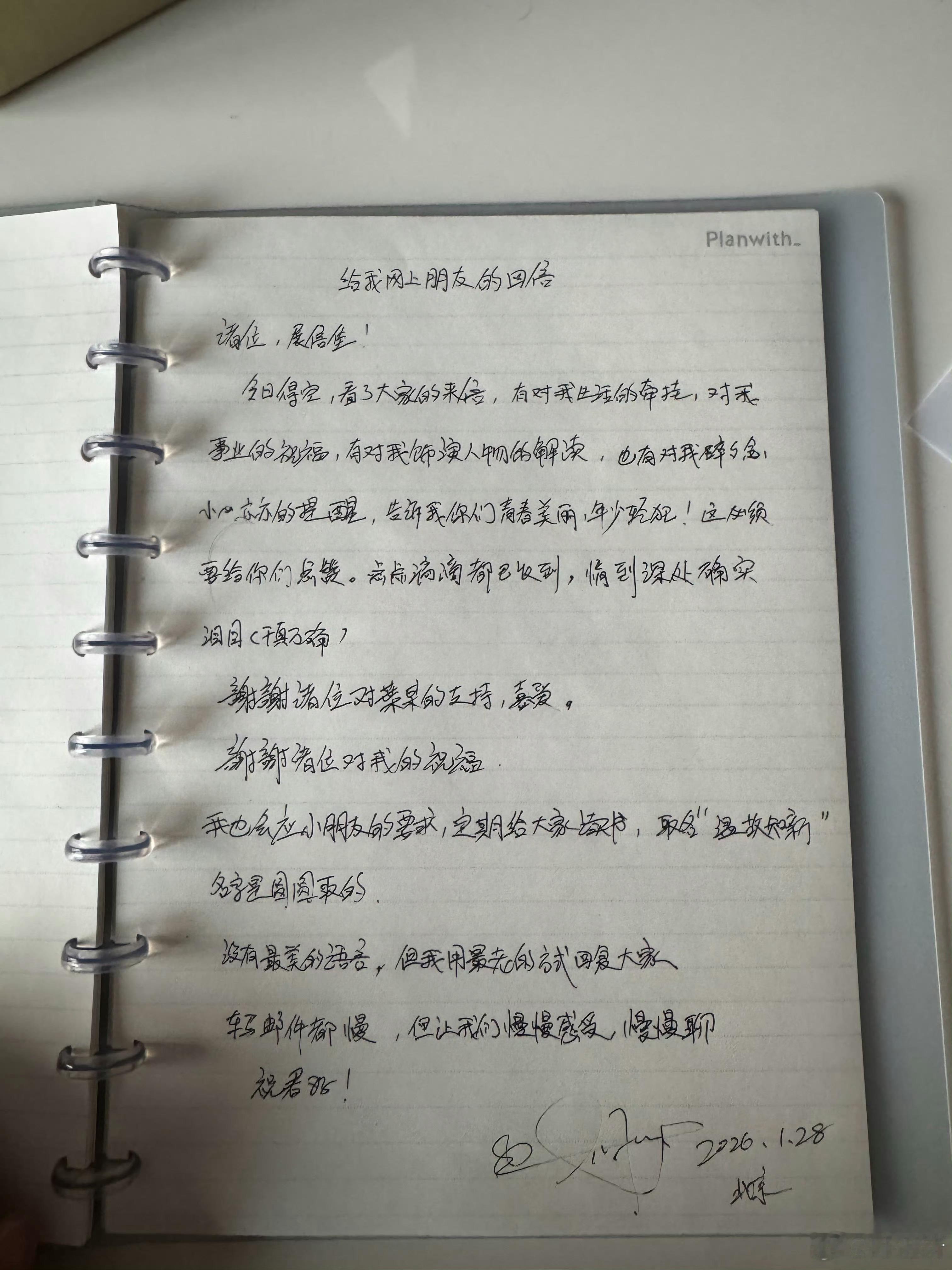 叶祖新 最近由于站姐发的视频意外出圈的叶祖新也是老来得粉了,还特地发文手写信感谢粉丝🥺🥺你们老辈子艺人就是懂得宠粉🥺🫶叶祖新手写信回应粉丝