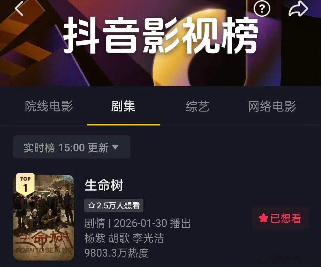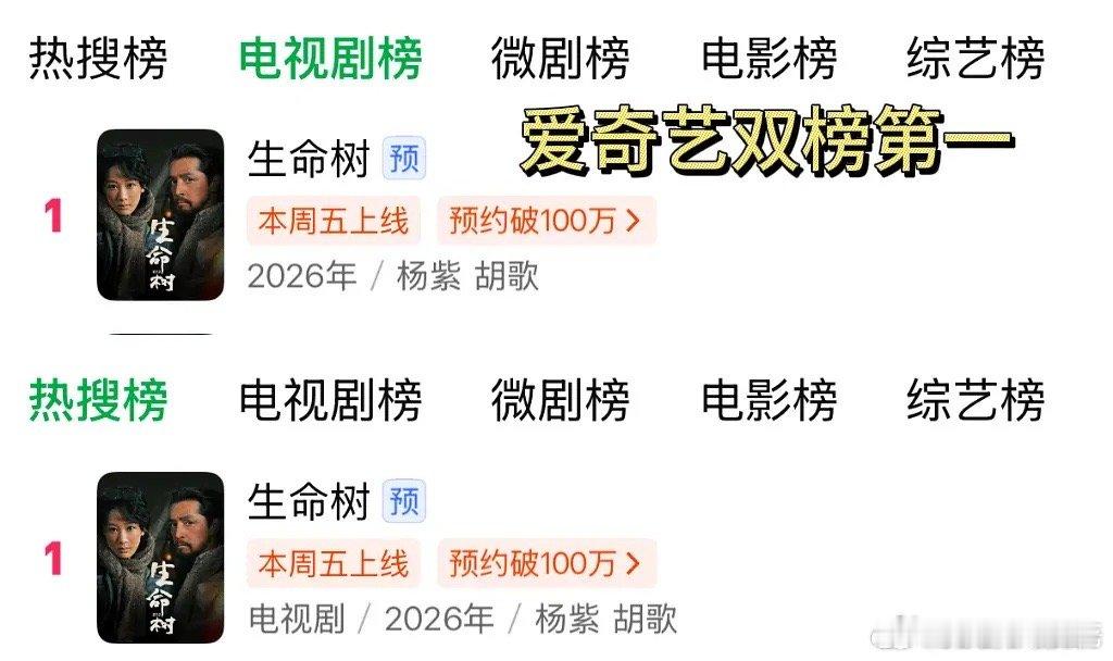 不得不说比起红黑俱灭,杨紫每次播剧红黑热度和讨论度拉满了啊现在生命树各平台讨论度纷纷登顶,剧专组粉丝也破万了看预告质感很不错的样子,你会去支持杨紫的生命树吗?