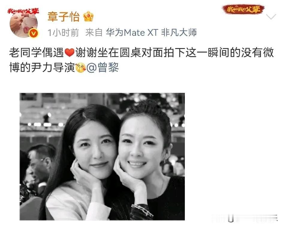 章子怡曾黎同框比美,谁的状态更好?章子怡晒照发文老同学偶遇,对面尹力导演拍下的照片。 一个是顶级骨相美的电影脸一个是二百年难遇的青衣大美人,没想到她们居然是老同学,各花入各眼吧。 曾经星光灿烂的北影96级明星班,与陈坤黄晓明是同班同学,章子怡在活动现场偶遇曾黎,两个人都没有什么变化,骨相美的天花板级别女神,美人在骨不在皮具象化了。