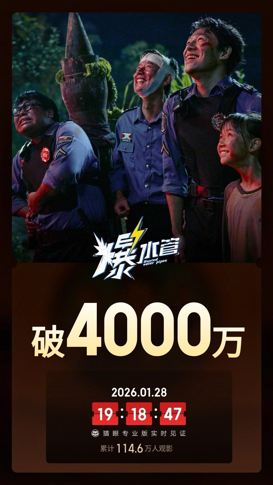 爆水管票房破4000万据猫眼专业版数据,电影《爆水管》上映6天,总票房破4000万。