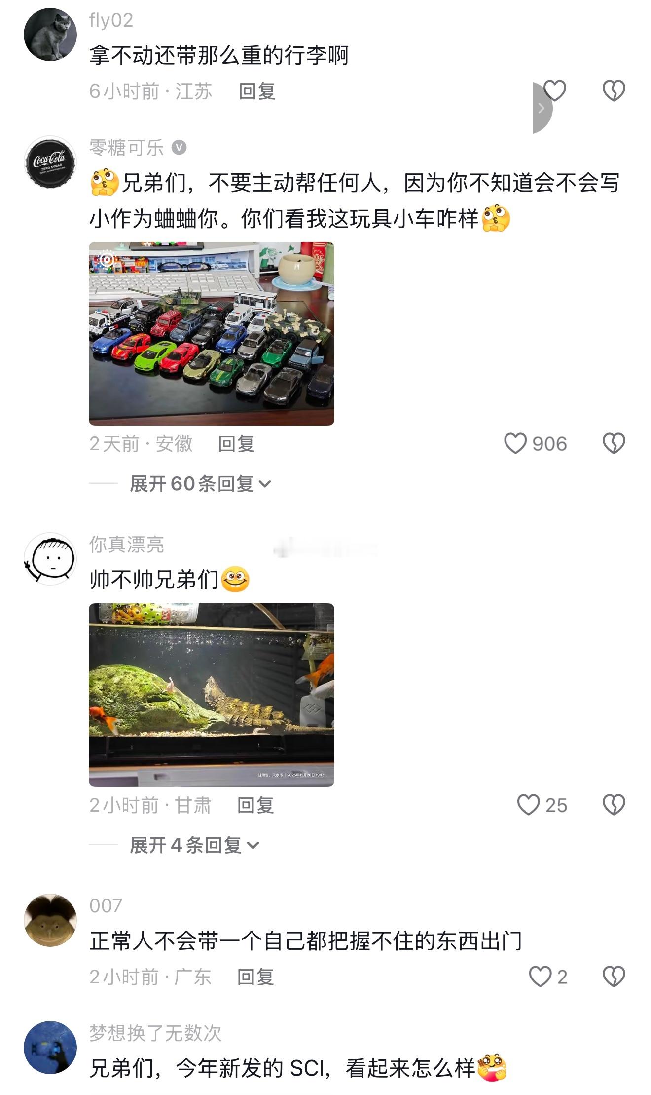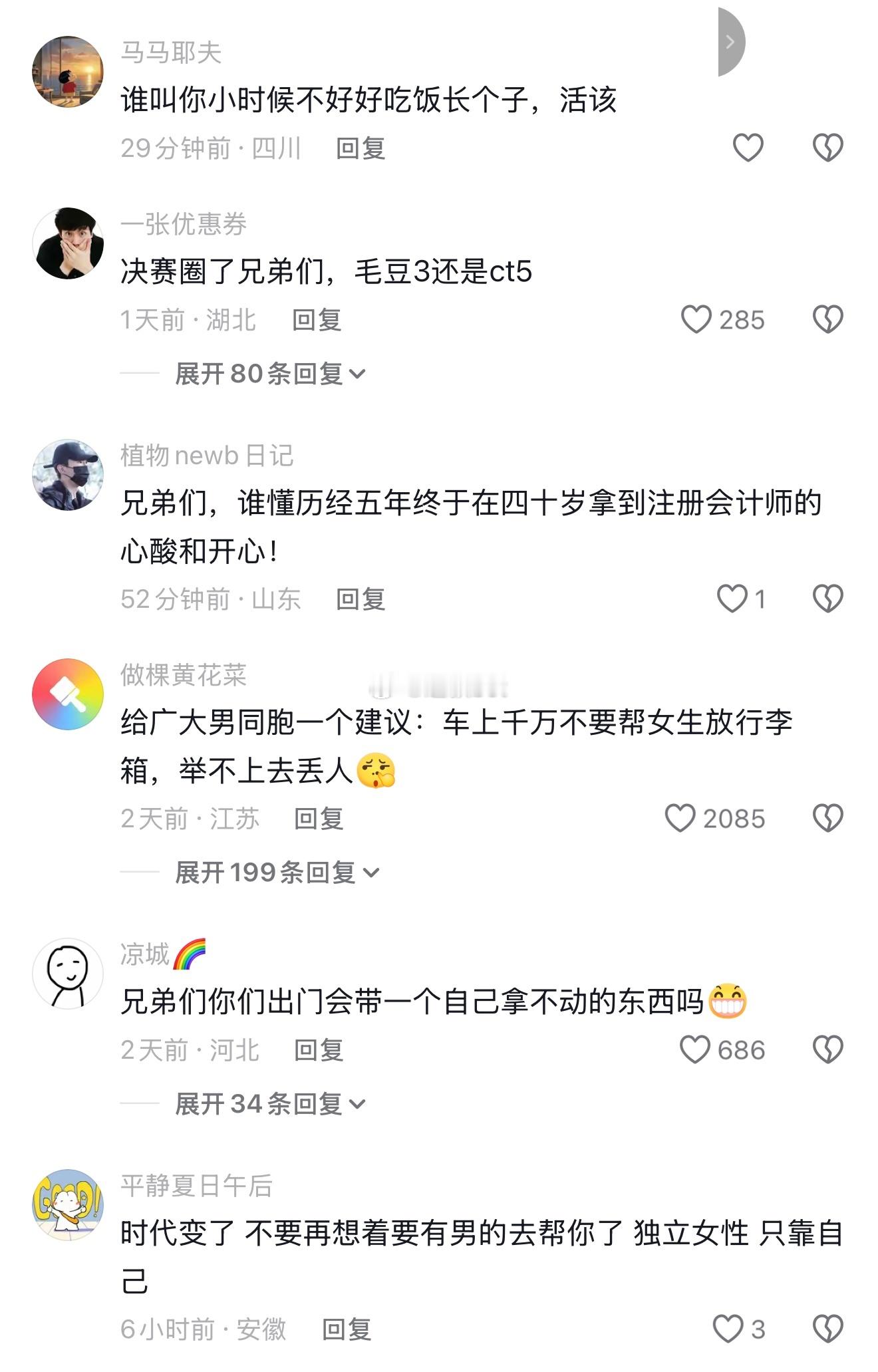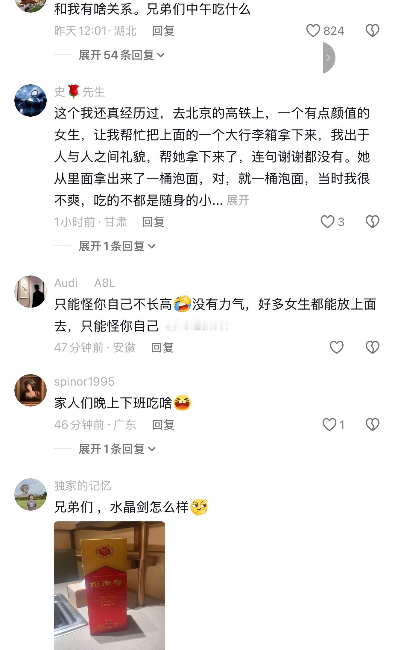 女生抱怨说坐高铁行李箱放不上去,然后下面的评论区全是各种发图分享自己的美好生活。这是怎么了?
