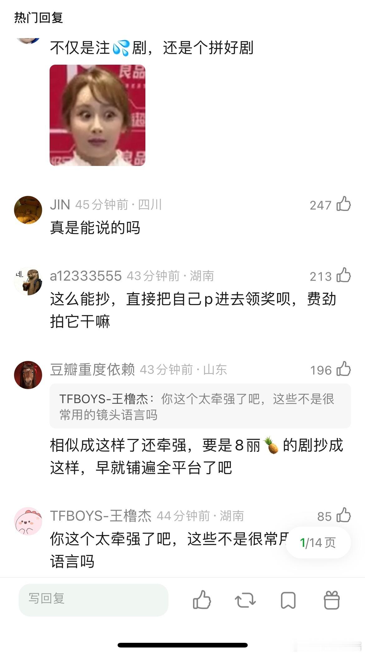 站位和分镜都一模一样,而且只是预告都这么多相似的,《生命树》是已预定大奖的拼好剧
