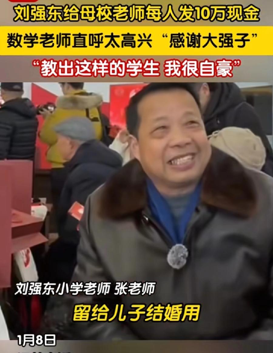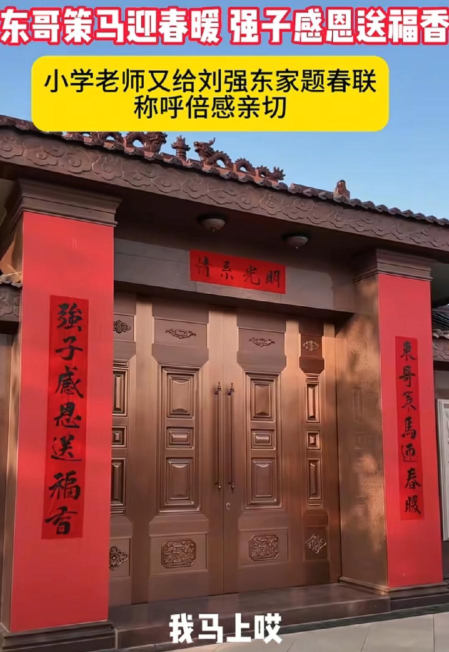 给刘强东家送春联,小学数学老师张显鹏,去年领10万红包,说给儿子结婚用,很真实,没想到数学老师,毛笔字书法写得那么好!张老师解释了创作由来,听到有人说刘强东送年货,一个称呼东哥,一个称呼强子,所以有感而发!今年自己学生又送年货,虽然不发红包了,老师同样自豪骄傲!
