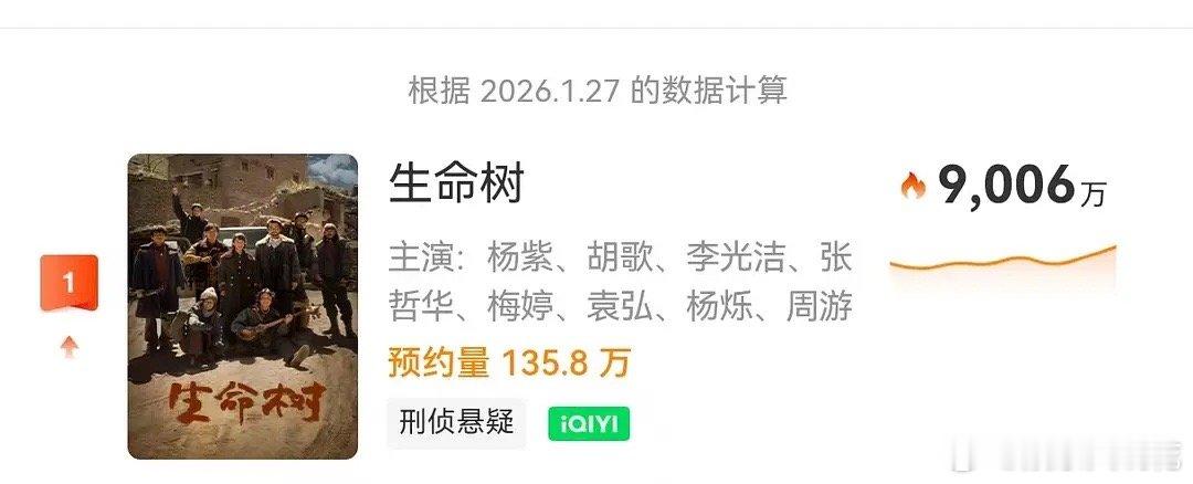 杨紫的抗剧能力应该是毋庸置疑的吧,这号召力也太强了!开播前两天的生命树已经达成5️⃣榜单登顶的好成绩未播剧德文塔破1,生命树是第一部诶
