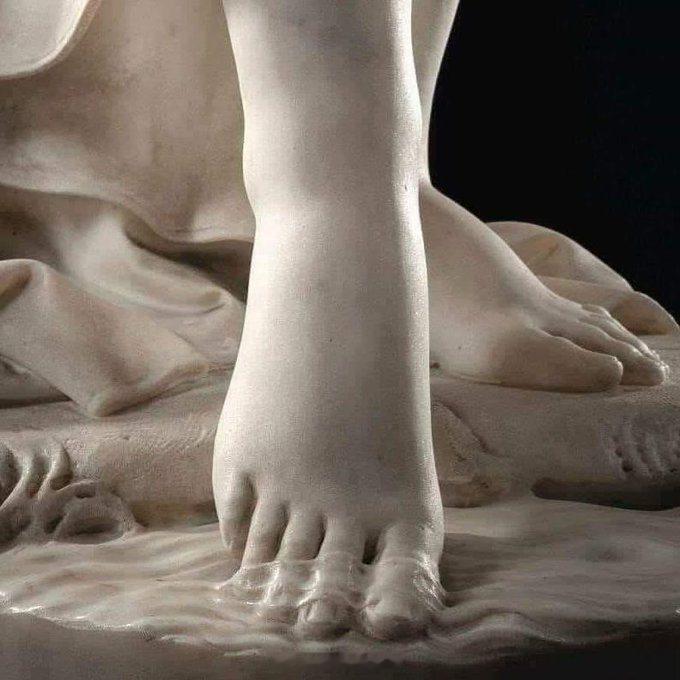 大理石看起来湿漉漉的。这个令人瞠目结舌的细节来自意大利雕塑家乔瓦尼·巴蒂斯塔·隆巴尔迪(Giovanni Battista Lombardi,1823-1880 年)的《仙女》(La Ninfa),其中坚固的石头被雕刻成模仿水在她赤脚周围荡漾的样子。完整的雕塑于 1858 年为布雷西亚法奇宫 (Palazzo Facchi) 创作