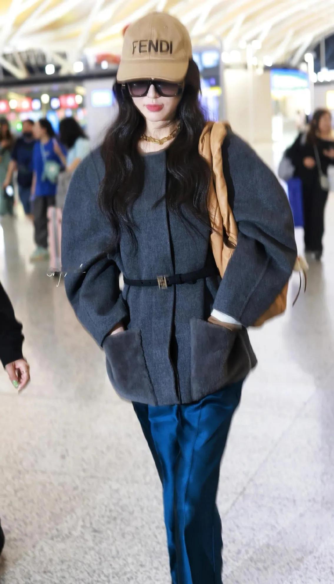 唐嫣这波机场穿搭,是秋冬氛围感天花板吧✨ 深灰色毛呢大衣自带高级感,腰带一系,慵懒随性中又藏着好比例。 搭配电光蓝长裤和FENDI棒球帽,复古又时髦,41岁状态真的绝了! 姐姐这换风格的速度,我狠狠跟上了! 唐嫣 机场穿搭 秋冬氛围感