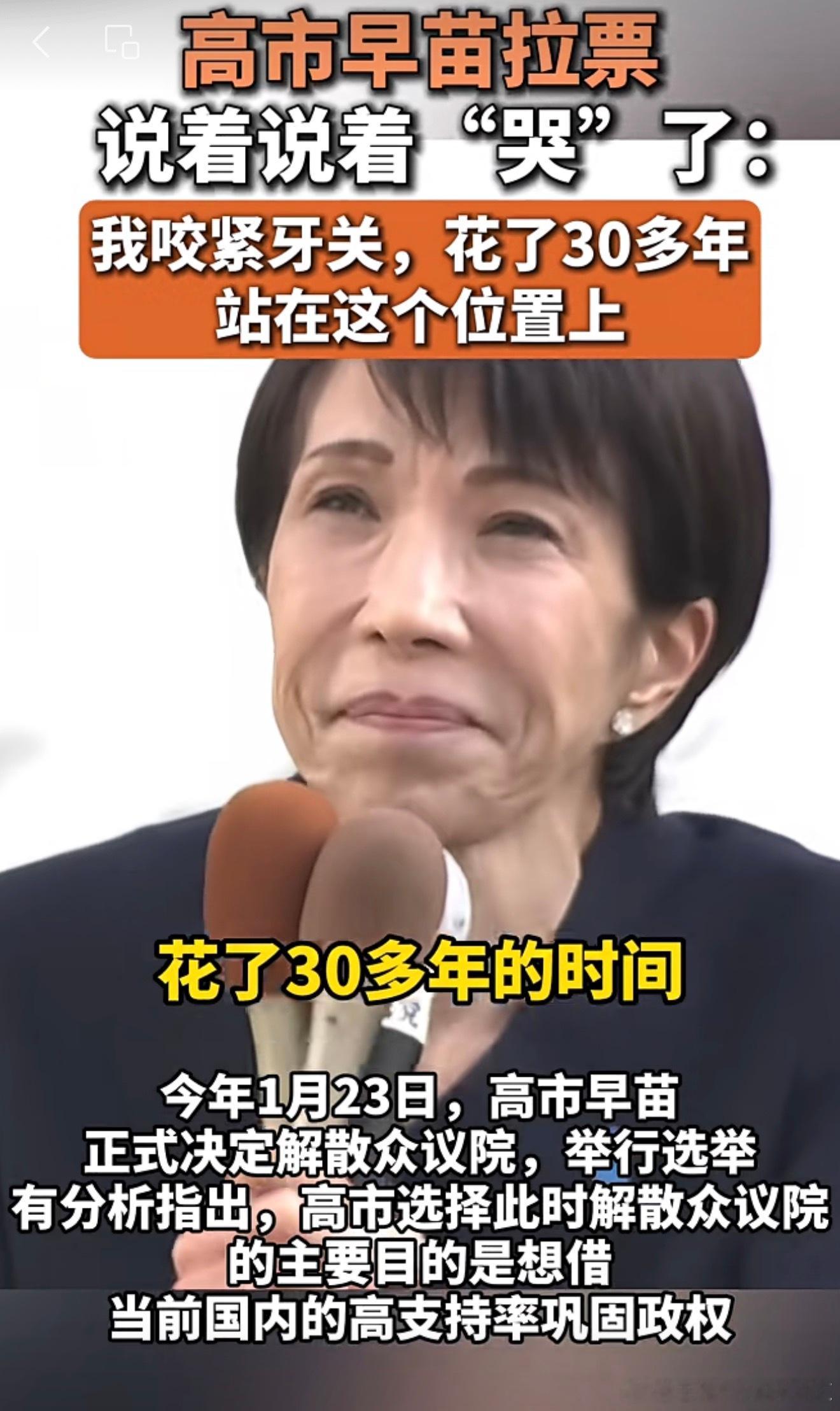 高市早苗拉票,说着说着“哭”了:我咬紧牙关,花了30多年,站在这个位置上!!!