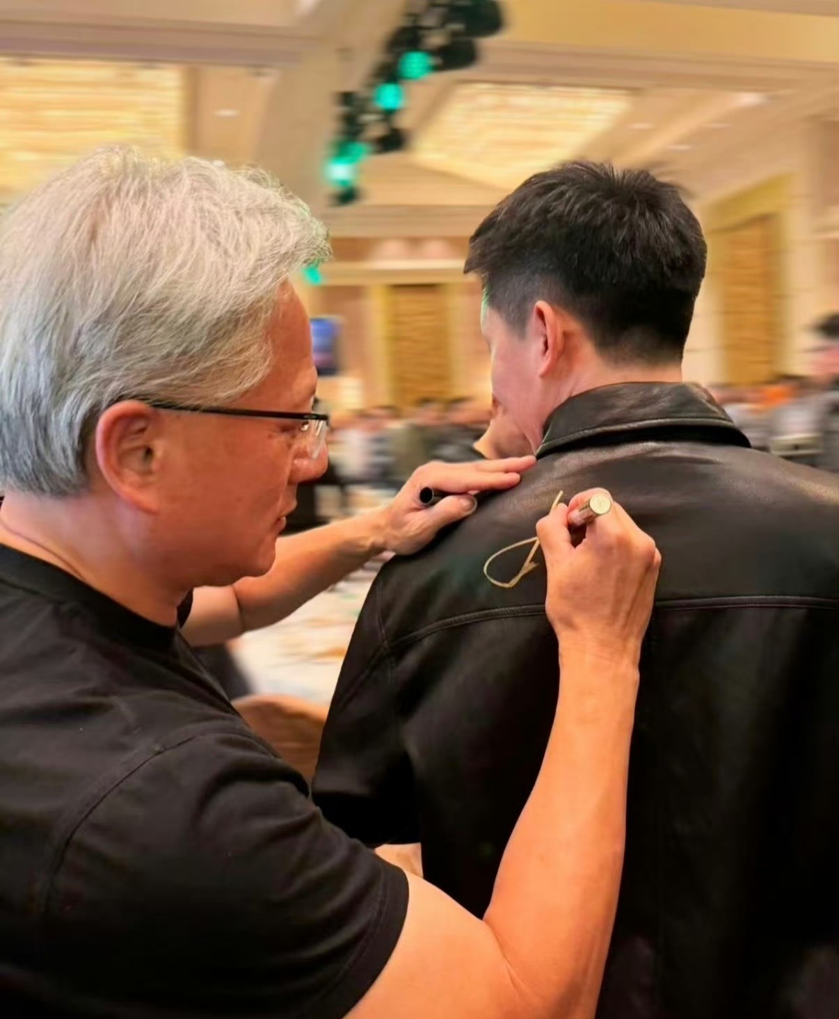 英伟达员工晒年会最牛年终奖 我去,这样也行,直接给发件皮衣,还当明星一把,给签个名。这件皮衣能值多少钱呢?讲真的,要是我,我直接问能不能换成现金。如果跟1W选,你会选皮衣还是1W?真心话,英伟达员工晒年会最牛年终奖