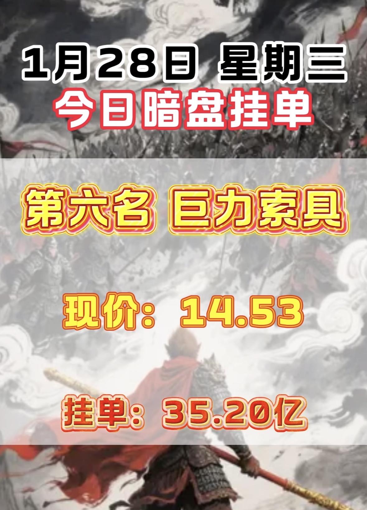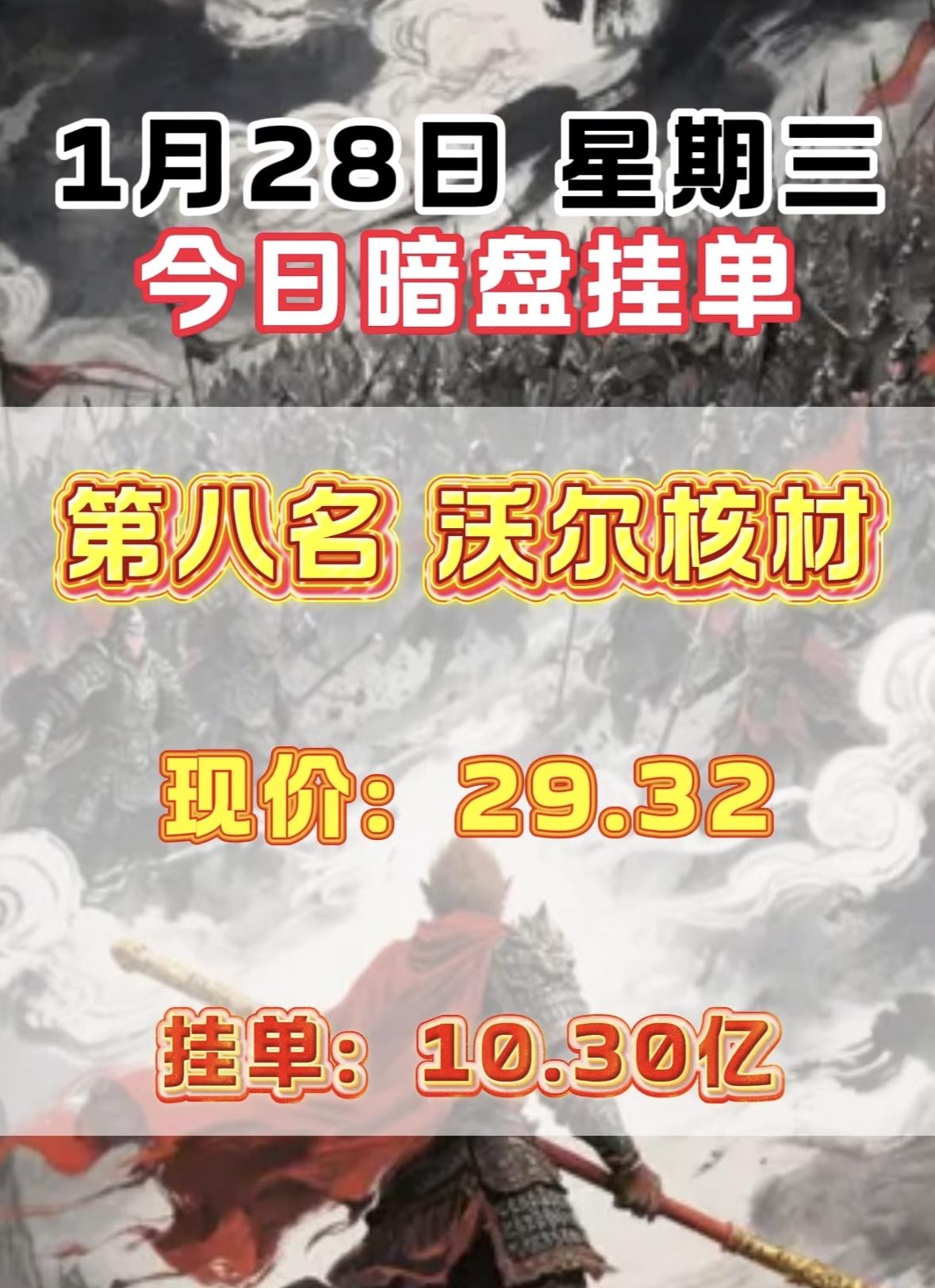 1月28日暗盘挂单,沃尔核材现价29.32,挂单10.30亿 今日暗盘挂单榜首:利欧股份当前表现亮眼,值得 利欧股份今日暗盘领跑,市场关注度飙升,投资者紧盯动向。