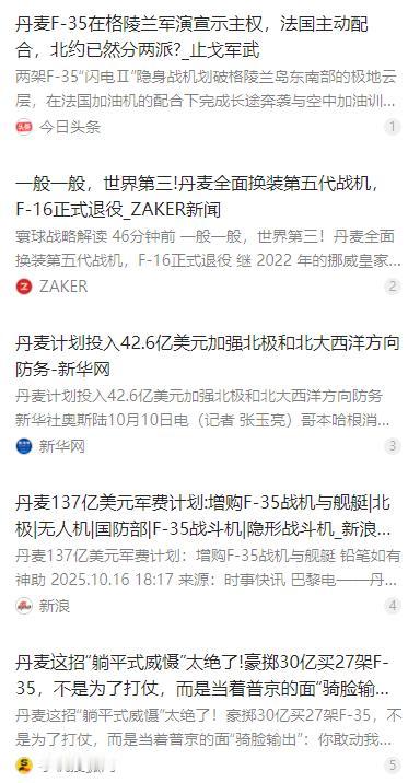 丹麦这招真的牛,就一句话:你敢动我,我就当着全世界的面,大败给你看。丹麦买了F-35战斗机,算是给对手下了一盘大棋。这不是买武器这么简单,而是直接用勇气和策略挑战对手。丹麦这个小国,不仅在军事上反击对手,更是在经济上、心理上、上与对手博弈,丹麦想让对手在国际舞台上彻底没脸没皮。 麻烦看官老爷们右上角点击一下“关注”,既方便您进行讨论和分享,又能给您带来不一样的参与感,感谢您的支持! 丹麦斥资数十亿美元采购 F-35 隐形战斗机的操作,看着是简单的军购行为,实则是给北极地缘博弈的对手下了一盘大棋。这不是单纯买武器提升战力,而是这个北欧小国用勇气和策略,在军事、经济和心理上的全面博弈,直白点说就是让对手想动手前,先掂量掂量代价,敢动就只能在全世界面前落个难堪的下场。 2025 年 10 月丹麦官方公布,将斥资约 45 亿美元采购 16 架 F-35A 战机,把该国的 F-35 机队规模扩充至 43 架,加上此前的相关投入,这笔军购的总预算达到数十亿美元。而这次采购的核心目的,就是强化丹麦在北极和北大西洋方向的防务能力,应对俄罗斯在北极区域持续加强的军事部署。 作为北约和北极理事会的双重成员国,丹麦的这一军购举动,从一开始就得到了北约在政治和军事层面的积极支持。北约的协同作战体系和军事保障,让丹麦在北极的防务部署有了更强的后盾,也让其在北极的军事存在更具威慑力。 丹麦很清楚,以自身的国家体量,在军事力量上根本没法和大国拼数量,所以从一开始就没走堆装备的路子。而是选择高投入换取质量上的不对称优势,F-35A 的隐身性能、态势感知能力和联合作战能力,在北极的空旷空域里能形成绝对的技术代差,这就是丹麦最核心的军事威慑。 F-35A 适配北极的低温复杂环境,低温启动仅需 5 分钟,还能实现侦察信息的实时共享,搭配其空战和对地打击的综合战力,完全能满足丹麦在格陵兰岛及周边的多任务防务需求。这款战机的部署,让丹麦在北极有了能隐蔽突袭、远程作战的空中力量,这是传统四代机根本没法比的。 丹麦的考量远不止国防层面,这次采购 F-35 是兼具经济和政治的国际战略布局,也是其对自身在国际政治中角色的重新定义。北极航道是全球重要的贸易通道,格陵兰岛还拥有丰富的矿产资源,守住北极的战略主动权,就是守住丹麦的经济和地缘利益。 在经济层面,F-35 的部署让丹麦能有效守护北海的油气田等能源设施,避免俄罗斯的军事力量对其能源安全造成威胁,把制空权转化为实实在在的能源话语权。同时,这笔军购也让丹麦在欧洲的北极事务中,拥有了更多的话语权和参与度。 心理层面的博弈更是丹麦这步棋的关键,俄罗斯在北极部署了大量防空系统和核潜艇,试图强化区域影响力,而丹麦的 F-35 机队,就是让俄罗斯清楚看到动武的高成本。俄罗斯若想对丹麦动手,不仅要动用最精锐的装备,还得直面整个北约的反制,这笔账怎么算都不划算。 丹麦这招的聪明之处,就在于把 F-35 变成了一张 “免死金牌”,买的不是单纯的战机,而是北约的体系化保护。F-35 接入北约的数据链后,俄罗斯的雷达只要锁定丹麦的战机,就等于暴露了自身的军事部署,这种单向透明的压迫感,比真刀真枪的对抗更有威慑力。 作为一个人口不到 600 万、常备军仅有 2 万人的小国,丹麦没有选择和大国硬刚,而是用精准的高投入打造非对称威慑,这是小国在大国博弈里的生存智慧。它没有盲目扩军,而是找准自身的战略需求,用技术代差弥补数量不足,让对手知道动它的成本高到难以承受。 丹麦的这一举动,也打破了北极地区传统的力量对比,此前北极的军事格局主要由美俄主导,而随着丹麦等欧洲国家强化北极军事存在,F-35 机群形成的空中防御网,让欧洲在北极事务中拥有了更多的主动权,也让北极的地缘博弈变得更加多元。 此次采购 F-35,也是丹麦向世界传递的一个明确信号,面对大国的军事压力,这个北欧小国绝不会退缩,会用一切手段主动捍卫国家的主权和利益。它用实际行动证明,在现代国际博弈中,智慧和策略往往比单纯的武力更重要,精准的威慑远胜过廉价的暴力。 当然,丹麦也面临着现实的问题,F-35 的维护成本高昂,每小时飞行成本就达 3.6 万美元,长期的常态化部署对丹麦的军费是不小的压力,极地的强辐射环境还会加速战机隐身涂层的损耗,需要频繁维护才能保证性能。 但即便如此,丹麦也没有停下北极防务部署的脚步,2026 年丹麦还计划在格陵兰岛开展多次海空联合演习,进一步提升极地环境下的作战能力。同时,丹麦还在和挪威、瑞典、芬兰等北欧国家深化军事合作,形成联盟化的军事部署,提升欧洲在北极的整体战力。