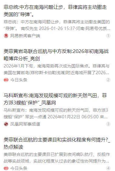 中菲这一战,晚打不如现在打,菲律宾总统表示:只要中方在南海问题上选择让步,那么菲律宾将主动的撤走美国的“导弹”。 麻烦看官老爷们右上角点击一下“关注”,既方便您进行讨论和分享,又能给您带来不一样的参与感,感谢您的支持!   小马科斯就任菲律宾总统后,菲律宾的南海政策就开始明显向美国靠拢,两国军事合作的密度和深度都在持续升级,其中最受关注的就是美国将 “堤丰” 导弹系统部署到了菲律宾本土。这款导弹射程超 1600 公里,能覆盖整个南海航道,打击能力不容小觑。   就在美菲军事绑定不断加深的背景下,马科斯政府抛出了一个看似有谈判余地的条件,声称只要中国在南海问题上做出让步,菲律宾就会主动撤走部署在境内的美国导弹。这番话看似是释放缓和信号,实则是把美国导弹当成了和中国博弈的筹码,试图用外部军事力量为自己的南海诉求撑腰。   马科斯政府心里打得算盘很清楚,自身实力不足以和中国在南海单独抗衡,就想着靠深化对美军事依赖的方式,提升自己在南海争端中的谈判底气。不仅如此,菲律宾还一心想成为美国在亚洲的重要军事前哨,试图借着中美博弈的大背景,在大国之间寻找所谓的主动权,为自己谋取更多利益。   为了达成这个目标,美菲的军事合作早已脱离了简单的协同演练,转向了实战化备战。2026 年 1 月,两国还在黄岩岛附近开展了年度首次联合巡航,不仅出动了护卫舰、驱逐舰等主力舰艇,还首次实施夜间开放水域巡航,甚至计划后续加入反潜等实战化课目,军警协同的模式也成为了常态。   据公开信息,美菲已经敲定 2026 年要开展超过 500 项联合军事活动,美国更是把菲律宾当成了在西太平洋的前沿阵地来打造。马科斯政府以为抱上美国的大腿就能高枕无忧,却忽略了一个最根本的事实,那就是菲律宾根本没有能力左右中美大国博弈的走向,最终只会沦为美国推行亚太战略的棋子。   这种赌上国家长期安全的策略,背后藏着巨大的风险。菲律宾一门心思依附美国,完全忽视了本国的安全需求,一旦中美在南海的博弈出现升级,身处前沿的菲律宾必然会最先受到波及,届时面临的地缘冲突风险,恐怕会超出菲律宾的承受范围,这是对国家和民众极不负责的做法。   为了给自己的军事动作找借口,马科斯政府还刻意打造菲律宾在南海的 “受害者” 形象,不断在国际上炒作所谓的南海摩擦事件,刻意迎合西方媒体的叙事倾向。从所谓的水炮事件到补给船对峙,大多是菲律宾主动闯入敏感海域引发,却被其歪曲解读,试图用舆论压力迫使中国让步。   这种做法不仅没能为菲律宾争取到更多国际支持,反而让其在地区外交中陷入了孤立的风险。东盟国家大多秉持中立态度,不愿被卷入中美竞争,马来西亚、印度尼西亚等国都在避免在南海问题上选边站,菲律宾的激进做法,也让其他东南亚国家感到不安和警惕。   尤其是 2026 年菲律宾还担任东盟轮值主席国,若其执意强推对抗性的南海议题,绑架东盟的整体议程,只会进一步失去地区国家的信任,让自己在东盟内部愈发被动。毕竟南海的和平稳定,是所有沿岸国家的共同诉求,没有谁愿意看到地区局势因为个别国家的动作而持续紧张。   面对菲律宾的一系列动作,中国在南海问题上的立场始终清晰且坚定,那就是不挑事、不怕事。中国始终坚守国家主权和海洋权益,对外部势力介入南海事务保持高度警惕,中国海警在相关海域的执法,也始终秉持专业克制、依法维权的原则,从未主动挑起冲突。   从 2016 年的非法仲裁案开始,中国就明确表示不接受、不承认,这份立场从未有过丝毫动摇。在黄岩岛、仁爱礁等敏感海域,中国面对菲律宾的挑衅始终寸步不让,但也始终保持着克制,没有主动升级局势,这既是对地区和平的珍视,也是中国作为大国的责任与担当。   中国一直倡导通过双边对话协商解决南海争端,这不是一句空话,而是实实在在的行动。目前南海行为准则的谈判正在推进,2026 年更是迎来了关键的窗口期,这为解决南海争端提供了最好的平台,也为地区国家化解分歧、实现合作创造了条件。   反观菲律宾,一边喊着和平的口号,一边却不断引入外部军事力量,强化军事部署,这种言行不一的做法,根本不利于南海问题的解决。靠导弹当筹码,靠外部势力撑腰,最终只会让南海局势愈发复杂,也会让菲律宾自身陷入进退两难的境地。   对于菲律宾来说,摒弃军事对抗的手段,放弃依附美国的投机策略,才是正确的选择。菲律宾应该拿出理性和诚意,采取平衡的外交政策,回到与中国对话协商的轨道上来,通过平等沟通化解分歧。只有这样,才能真正维护菲律宾的国家利益,也才能为南海的和平稳定贡献力量。