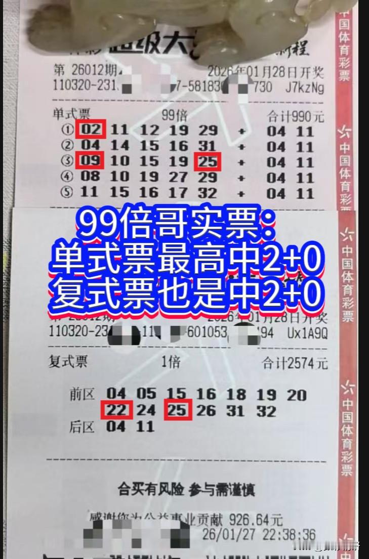 又是两手空空的一天。99倍哥的26012期大乐透,两张彩票再度与幸运擦肩,总计3564元的投注,像石子沉入深潭,连一丝涟漪都未曾惊起。 复式票前区选了13个号码,最终也只命中两个——关注他这么久,偶有小奖,也从未见过稍大的惊喜。每月十余万投入如流水,终究不是常人所能承担。对我们普通人来说,或许更应量力而行,以涓滴之力静待机缘。毕竟纵观彩市风云,真正靠大额投入揽获巨奖的,始终只是凤毛麟角。