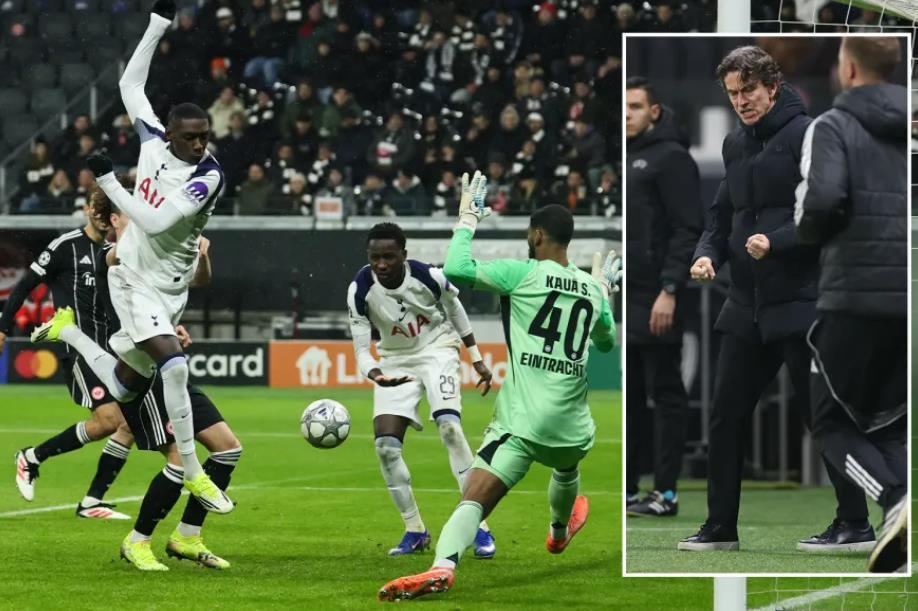 英超第14的热刺,直通欧冠淘汰赛!热刺2比0击败无欲无求的法兰克福,现在的德甲,除了拜仁,其他球队实力真的就是英超中下游水平。如果凯恩孙兴慜在热刺,这场球恐怕就是四球大胜了。西蒙斯一如既往的软脚蟹啊,一到门前就脚软。