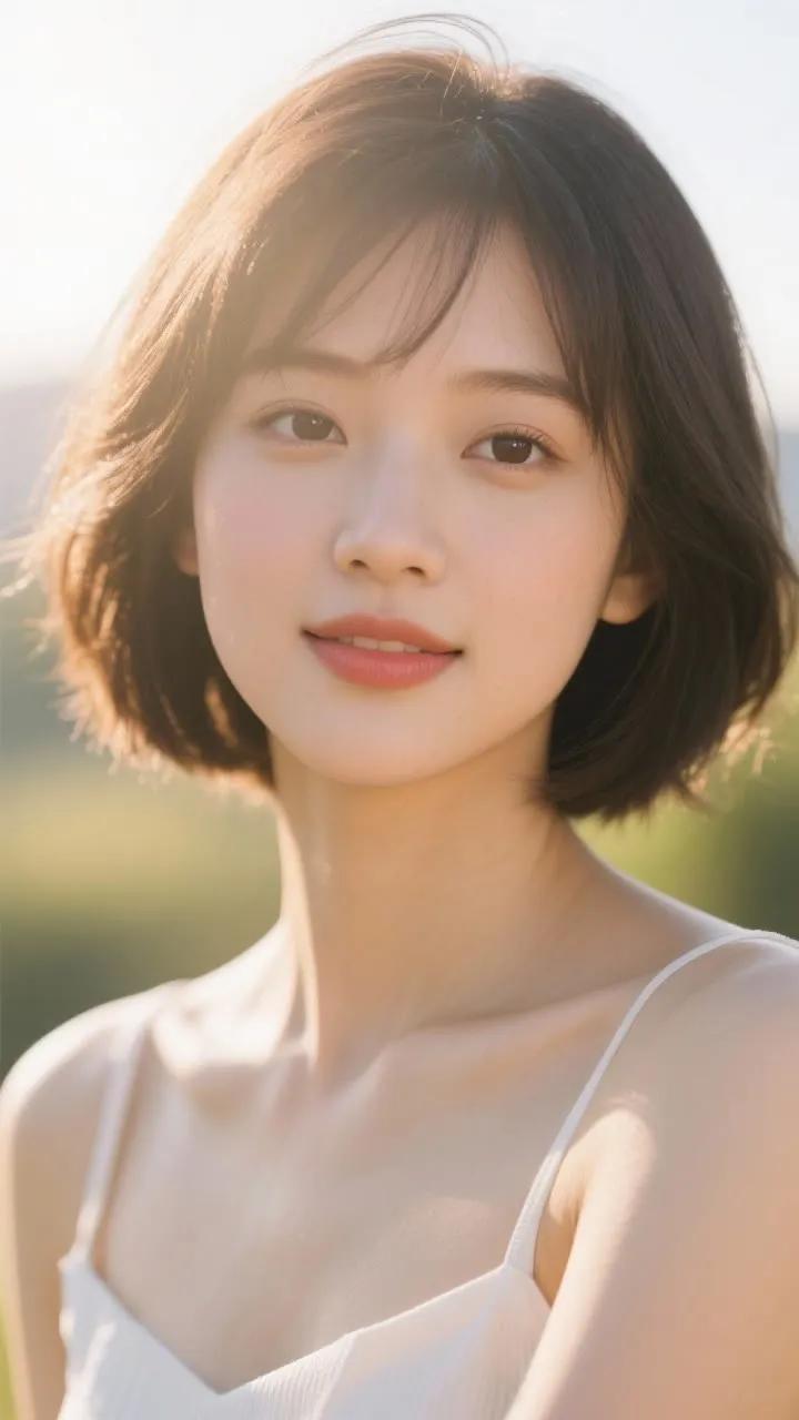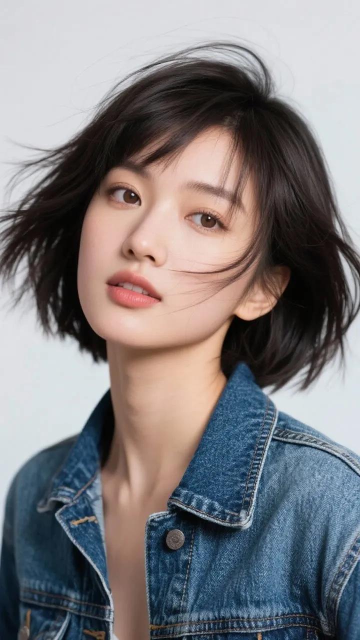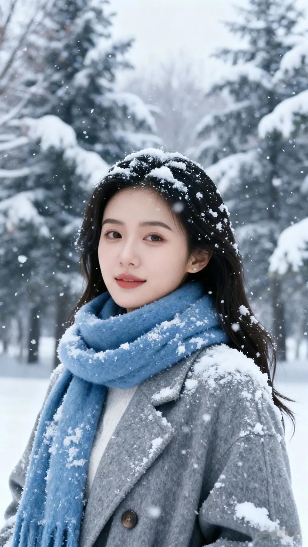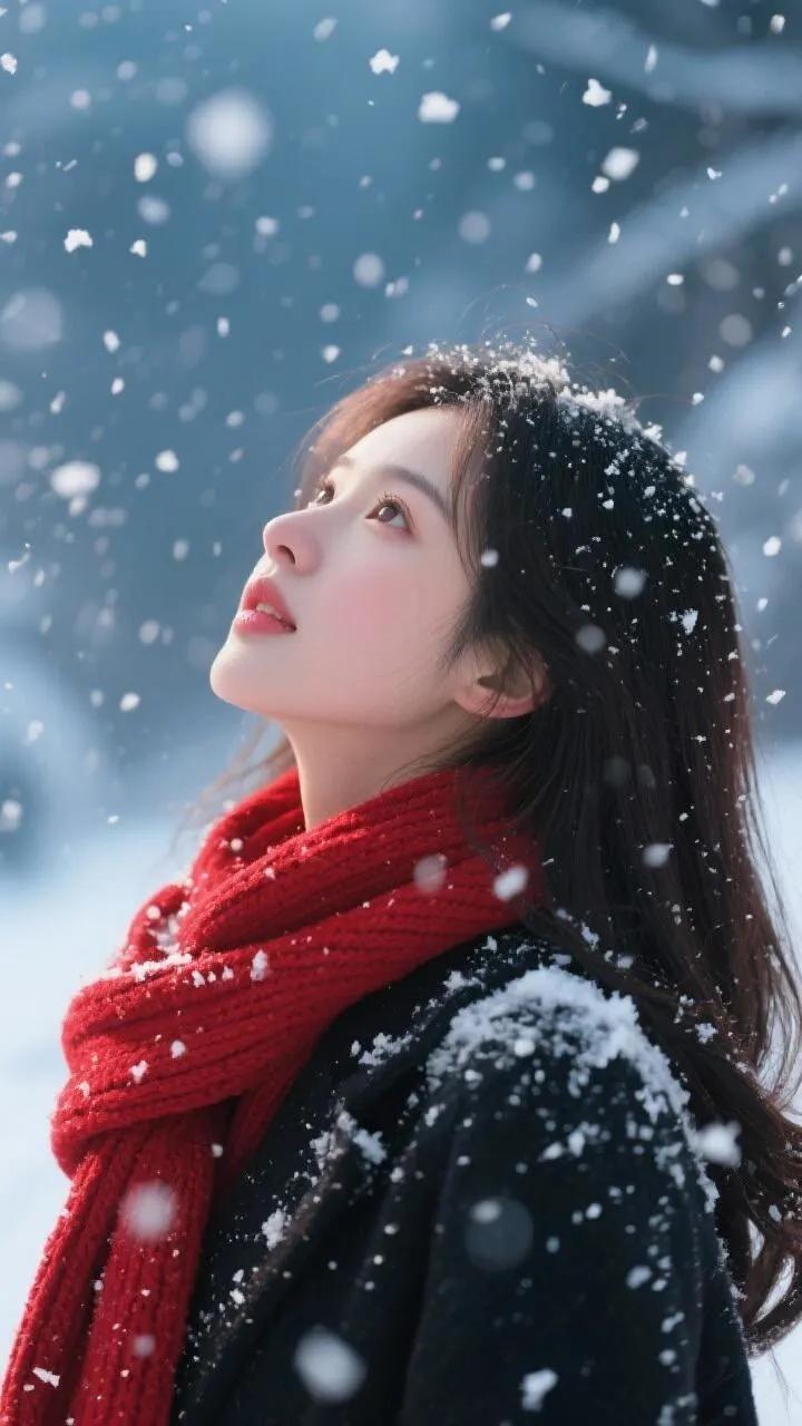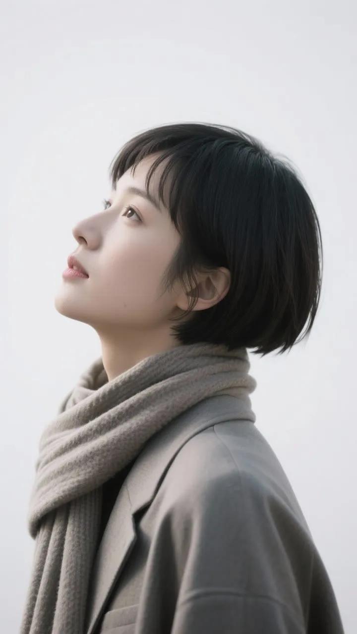 冬日暖阳下的温柔侧颜,黑发随风飘逸,尽显优雅与宁静。