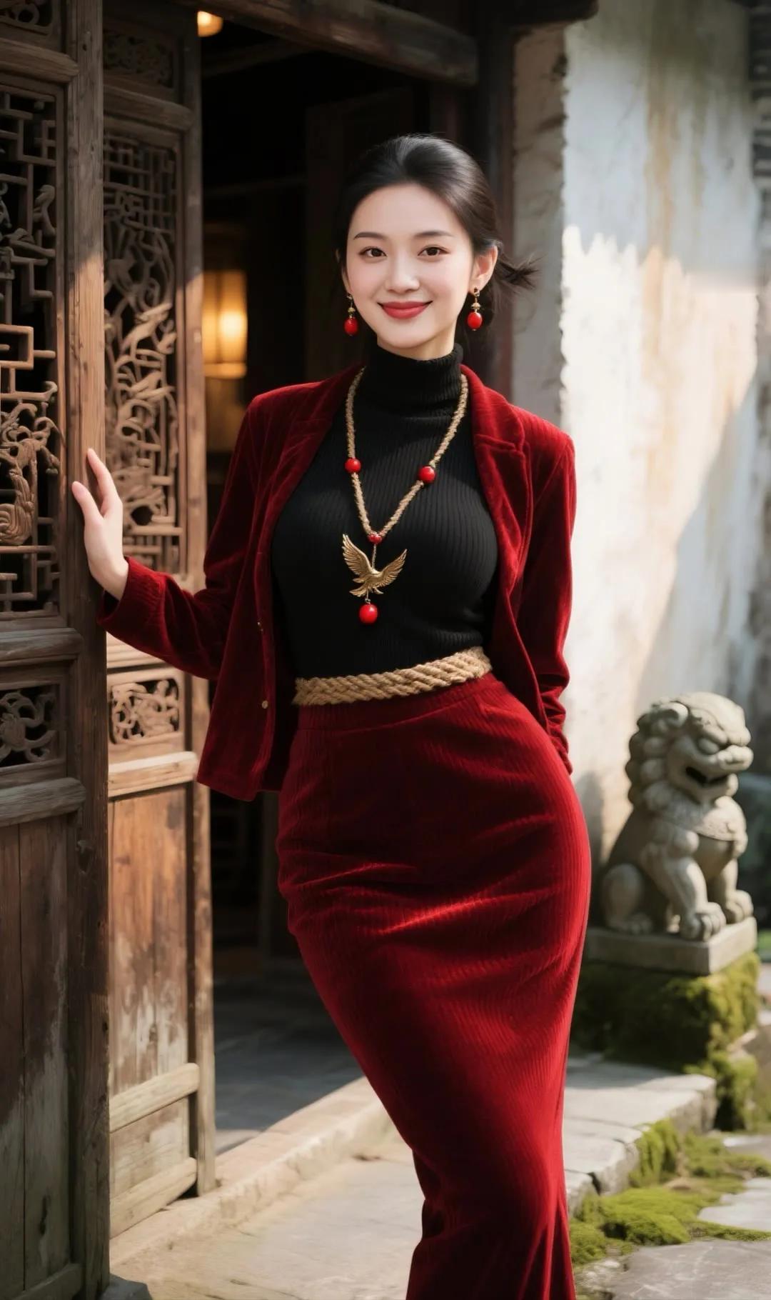 冬日暖阳下的温柔侧颜,黑发随风飘逸,尽显优雅与宁静。