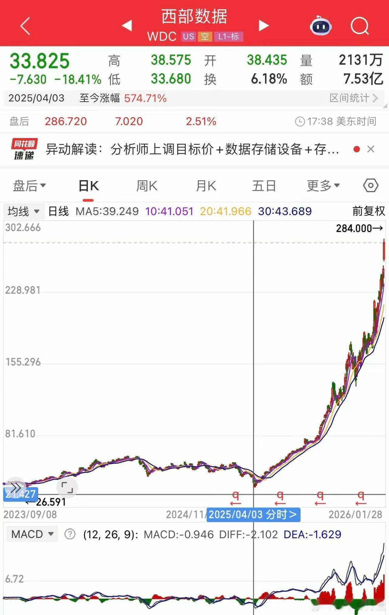 隔夜美股存储芯片再次暴涨,自2025年4月份启动以来:美光科技、西部数据、希捷科