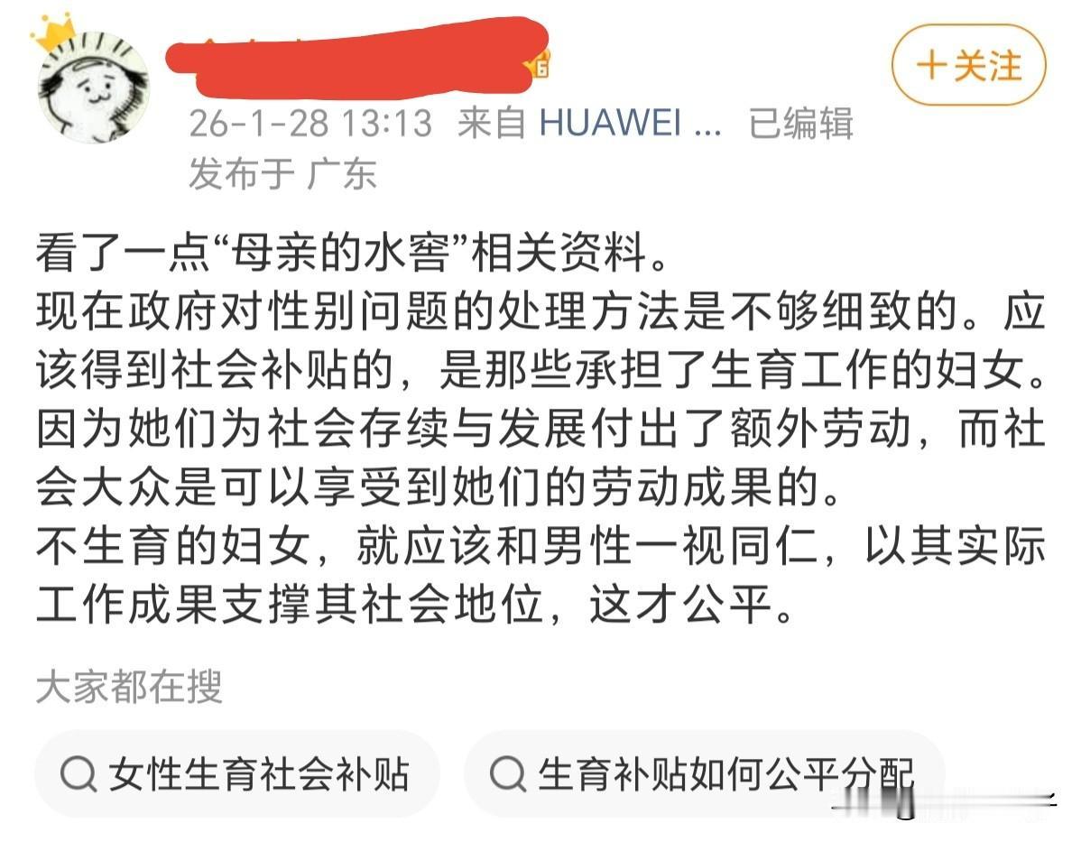确实如此,我国从建国开始就提倡男女平等嘛,但是因为女性需要生育,会在政策方面对女性有所倾斜。 然而随着工业化的发展,越来越多的女性选择不生育,那么以前的社会共识就要打破了。 全社会对女性政策倾斜,实际上是对母亲的照顾,包括对年轻女性的政策倾斜,都是自然的认为她们以后也会做母亲。 而在今天全国生育率大跌的情况下,全国人口出生已经跌破800万,那么针对女性的政策就应该有所区别了。 以后不能统一的给女性提高待遇,而是要把资源集中提供给母亲,“英雄母亲”的待遇要大幅增加,而那些不生育的女性和男性一个待遇就可以了。