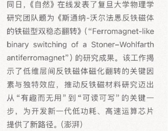 芯片革命一夜引爆!1月29日凌晨0点,全球科学界被中国“偷袭”! 1月29日0点,复旦大学两支团队同时登上国际顶级期刊《自然》——不是一篇,是两篇!硬核科技刷屏全球。   最受关注的就是“青鸟”原子层半导体通信系统,这可是全球首个能抗辐射、还超低功耗的太空通信设备。简单说,以前咱们的卫星在太空里,最怕的就是宇宙射线。   那些高能粒子撞在卫星的电子器件上,轻则让设备性能下降,重则直接报废,而且太空里的设备坏了根本没法修,只能自认倒霉。为了防辐射,过去的卫星都得装厚厚的屏蔽层,要么搞几套备用电路,不仅增重不少,发射成本高得吓人,还特别费电,影响卫星的在轨寿命。   复旦团队就换了个思路,不跟辐射硬扛,而是用原子层厚度的半导体材料做核心。这种材料薄到只有单个原子那么厚,高能粒子能直接穿过去,不会在上面留下损伤。   2024年9月24日,“青鸟”系统搭载着“复旦一号”卫星上了天,进入距离地球517公里的低轨道。团队还把复旦大学校歌的手稿照片存进系统,让它在太空里传输信号,最后传回地面解码,一点差错都没有。   经过9个月的在轨测试,“青鸟”的表现更是亮眼。传输数据的错误率低到几乎可以忽略,就算把它放到辐射更厉害的地球同步轨道,理论上能稳定工作271年,是传统硅基设备的100倍。   更关键的是它特别省电,功耗还不到传统设备的五分之一。这就意味着,以后咱们造卫星,不用再堆厚重的防护层,既能减轻卫星重量、降低发射成本,又能延长使用寿命,在太空探索里占足了优势。   这一点在卫星互联网竞争里,就是妥妥的硬核底牌。现在美国的星链计划,靠着大量卫星组网,在全球抢轨道、抢频谱资源,还跟美军深度合作,在战场上都用过。   咱们的千帆星座虽然起步稍晚,但“青鸟”系统一出来,就补上了关键短板。星链的卫星寿命大概5年,功耗也高,而咱们的卫星有了“青鸟”,寿命更长、维护成本更低,还能在辐射强的轨道稳定工作,不管是民用通信还是特殊场景需求,都比对方更有韧性。   另一支复旦团队的成果也不简单,他们研究的反铁磁材料,终于从“有趣但没用”变成了“能读能写”。这种材料比咱们手机、电脑里用的普通磁性材料更稳定、抗干扰,运算速度理论上能快上千倍。   以前因为没法探测和操控它,一直没法实际应用,复旦团队靠自主研发的设备,解决了这个难题,为以后造更快、更省电的芯片打下了基础。这两项成果同时爆发,不是偶然,而是咱们从材料、器件到系统集成,全链条自主研发的必然结果。   以前西方总觉得,中国科研只会跟着别人后面走,在太空电子、高端材料这些核心领域,他们握有技术垄断,只要卡脖子,咱们就没办法。就像有些人事先预判的那样,觉得中国搞不出高端抗辐射设备,卫星通信永远要受限于传统技术。   可这次复旦团队用实打实的成果证明,中国不仅能搞出来,还能做到全球首创,把技术水平拉到了新高度。   要知道,“青鸟”系统从材料生长、芯片设计,到卫星搭载、在轨验证,全都是团队自主攻关,历时四五年才完成,是国内唯一实现全栈技术自研的团队。   这种自主可控的能力,才是最让西方忌惮的。以前他们靠技术封锁压制中国,现在咱们在半导体材料、太空通信这两大关键领域同时突破,等于打破了他们的垄断幻想。   这两项成果的价值不止于科研本身。“青鸟”系统不仅能用于卫星,还能用到核聚变探测这种强辐射场景,形成数十亿甚至上百亿美元的市场。   反铁磁材料的突破,能让咱们在下一代芯片竞争中掌握主动权,不用再被别人卡芯片的脖子。更重要的是,它向世界证明,中国的基础科研已经从跟跑、并跑,开始进入领跑阶段,不再是只做别人剩下的技术改进,而是能开辟全新的研究领域。   现在全球科技竞争越来越激烈,太空通信、高端芯片就是重中之重。美国之前靠着星链和半导体优势,在全球掌握了信息话语权。而复旦这次的双重突破,等于给中国科技装上了“双引擎”,既巩固了卫星通信的竞争优势,又为芯片发展开辟了新路径。   往后大家就能看到,带着“青鸟”系统的中国卫星会越来越多,不管是偏远地区的通信覆盖,还是深空探测任务,都能稳步推进。   而反铁磁材料的应用,会让咱们的手机、电脑、服务器变得更高效、更节能。这些技术不是实验室里的摆设,很快就会落地到实际应用中,改变咱们的生活,也改变全球科技竞争的格局。   西方现在应该清楚,中国科技的突破从来不是靠运气,而是靠科研人员的潜心钻研和全链条的自主布局。以前想靠封锁卡住中国的路子,现在看来已经行不通了。