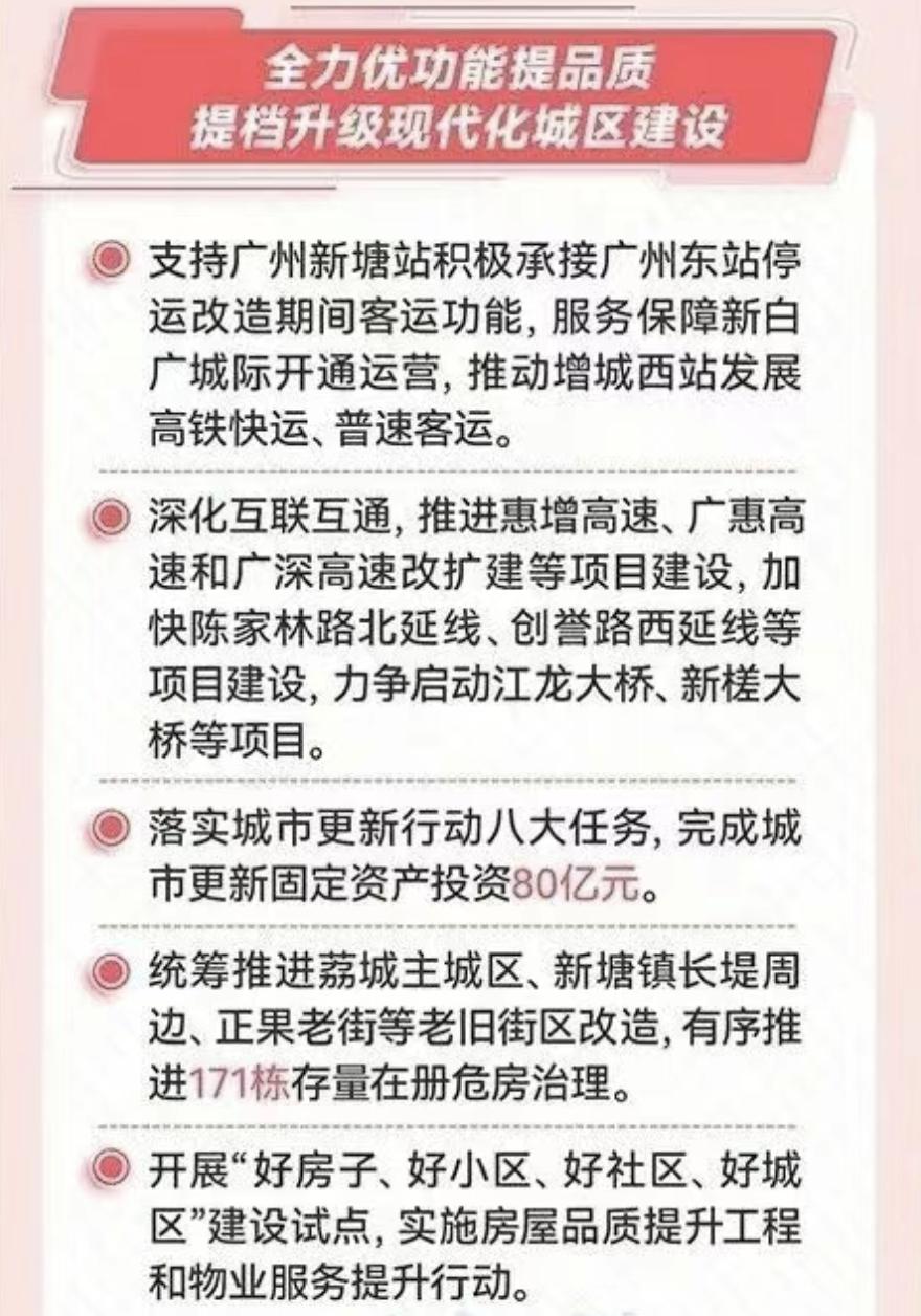 新塘站将承接广州东站停改造期间客运功能? 近日召开的增城区三届人大六次会议上,区政府工作报告提到: 支持广州新塘站积极承接广州东站停运改造期间客运功能,服务保障新白广城际开通运营,推动增城西站发展高铁快运、普速客运。 深化互联互通,推进惠增高速、广惠高速和广深高速改扩建等项目建设,加快陈家林路北延线、创誉路西延线等项目建设,力争启动江龙大桥、新槎大桥等项目。 广州东站改造及广州东至新塘五六线工程是粤港澳大湾区铁路枢纽升级的核心项目,旨在强化广州国家级综合交通枢纽地位。工程项目包含广州东站改造、新建五六线正线、既有广深线改建及动车运用所配套工程。 广州东站既有规模为7台16线(含正线4条),改造后广州东站的总规模将为14台24线(含正线),其中地面场设8台14线、地下场设6台10线。 新建广州东至新塘五六线正线全长约30公里,西起广州东站,东至新塘站,设计速度200公里/小时,按高速铁路标准建设,是广汕等高铁引入广州市中心的关键工程。 该工程已于2025年12月22日正式开工,建设总工期为5.5年。 广州东站改造期间,部分车次预计会迁移停靠广州新塘站、广州站、广州白云站。