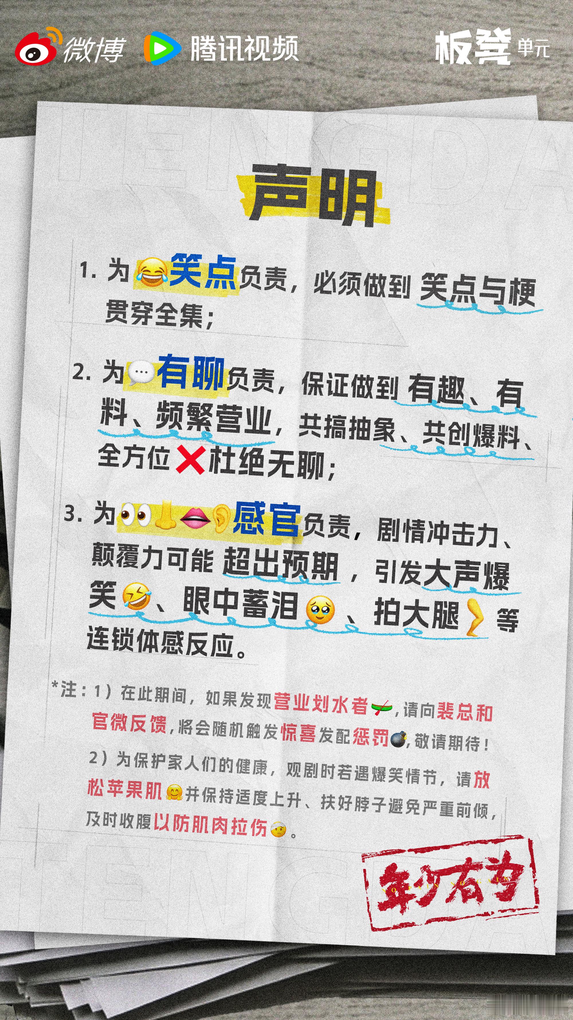 一小时前定档一小时后发声明 打工人狂喜!《年少有为》“禁止加班” 太懂了,定档即发爆笑声明,剧组整活一流,1.31 腾讯锁定~