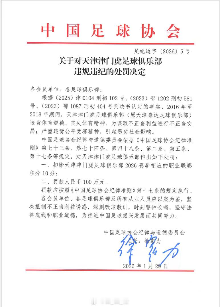 中国足协官网相关俱乐部通报自由橙山东泰山