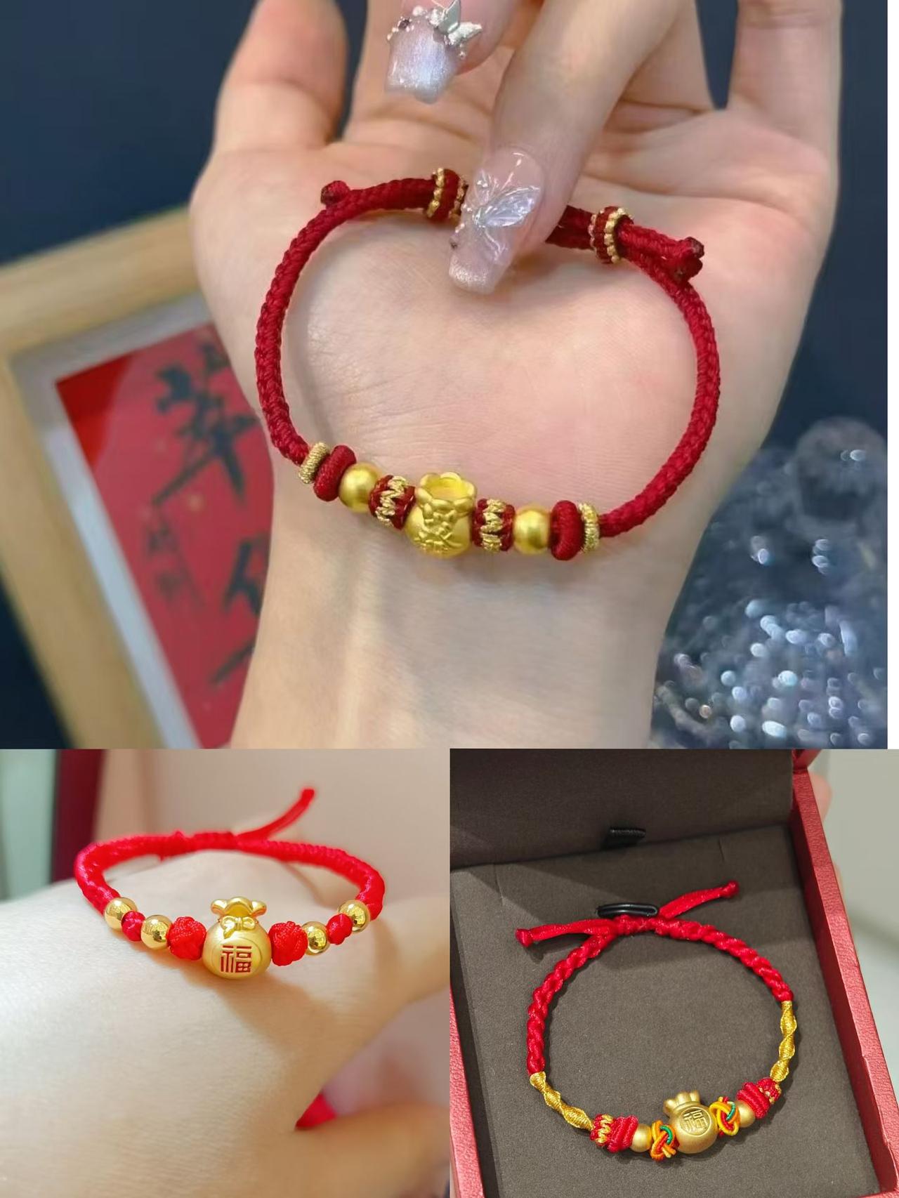 福气满满的手绳,红金相间,寓意吉祥!