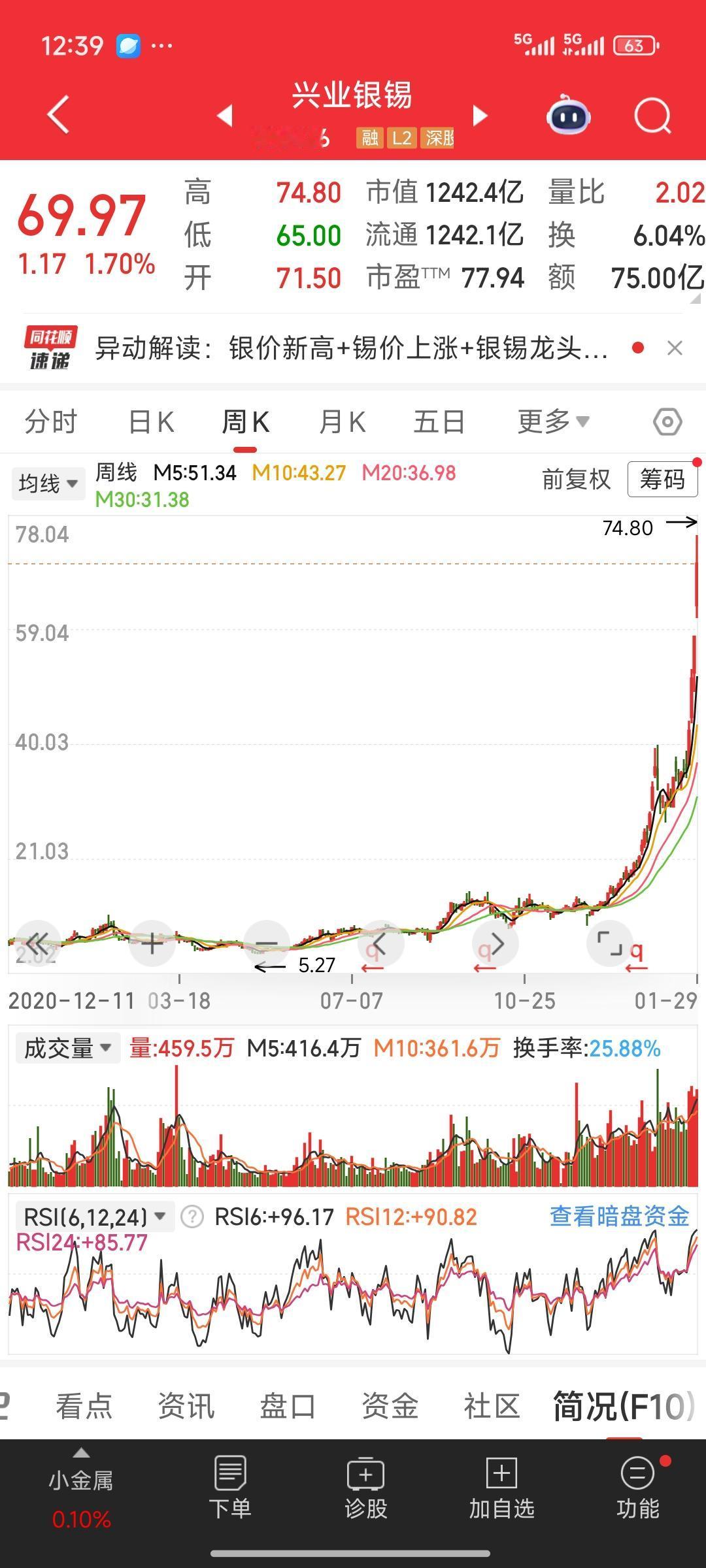 近期国际银价大幅飙升,A股市场中与白银相关的股票开启了第二轮主升浪。查看这些白银股票,如湖南白银、白银有色,兴业银锡等,基本上在这一轮行情中都已大涨10倍。当下无疑处于一个高位,若此前未参与,现在也就没必要再介入了。唉,兄弟姐妹们,我们又错失了一轮大行情的机会啊。市场各种机会真的多多啊,永远属于有眼光和坚定不移持有的人啊 白银价格疯涨 黄金白银价格 白银市场行情 白银贵金属 黄金白银 白银价格行情 白银追跌