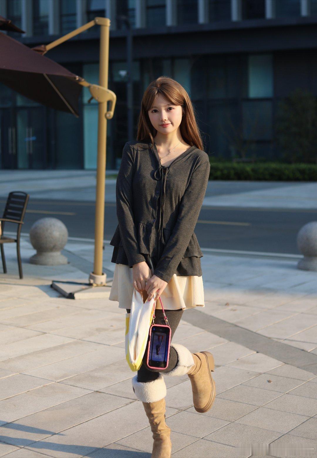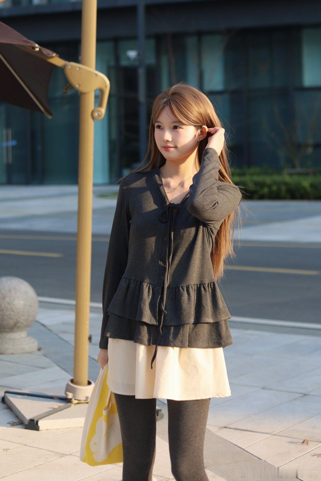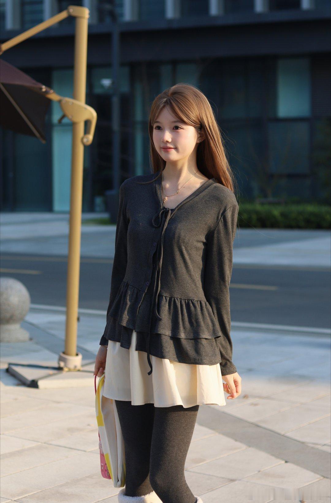 今日穿搭是深灰色荷叶边针织开衫,搭配同色系打底裤,温柔又显气质!建筑、路灯做背景,随手一拍都很出片~喜欢这种简约舒适的风格,仿佛把秋日的温暖穿在身上,无论是逛街还是约会都很合适哦~
