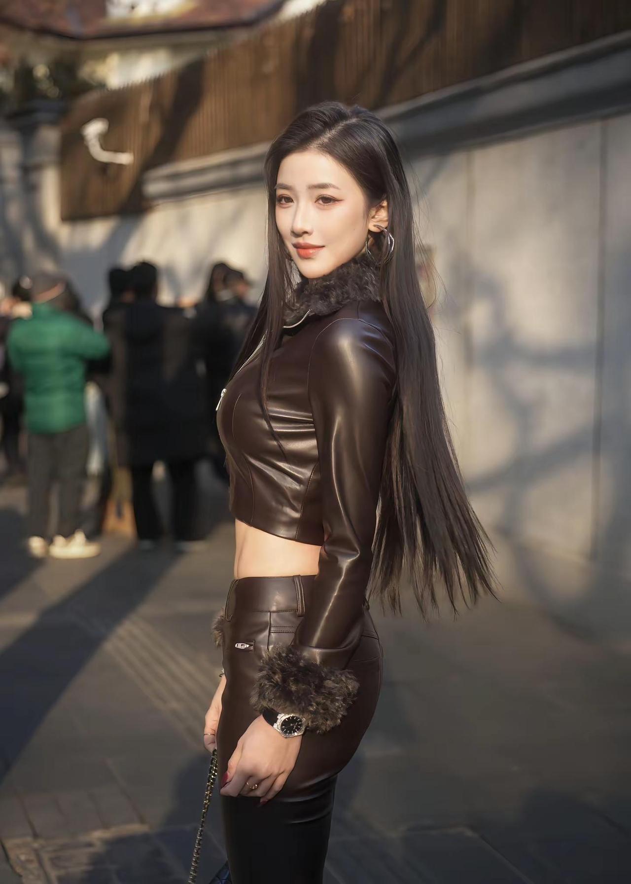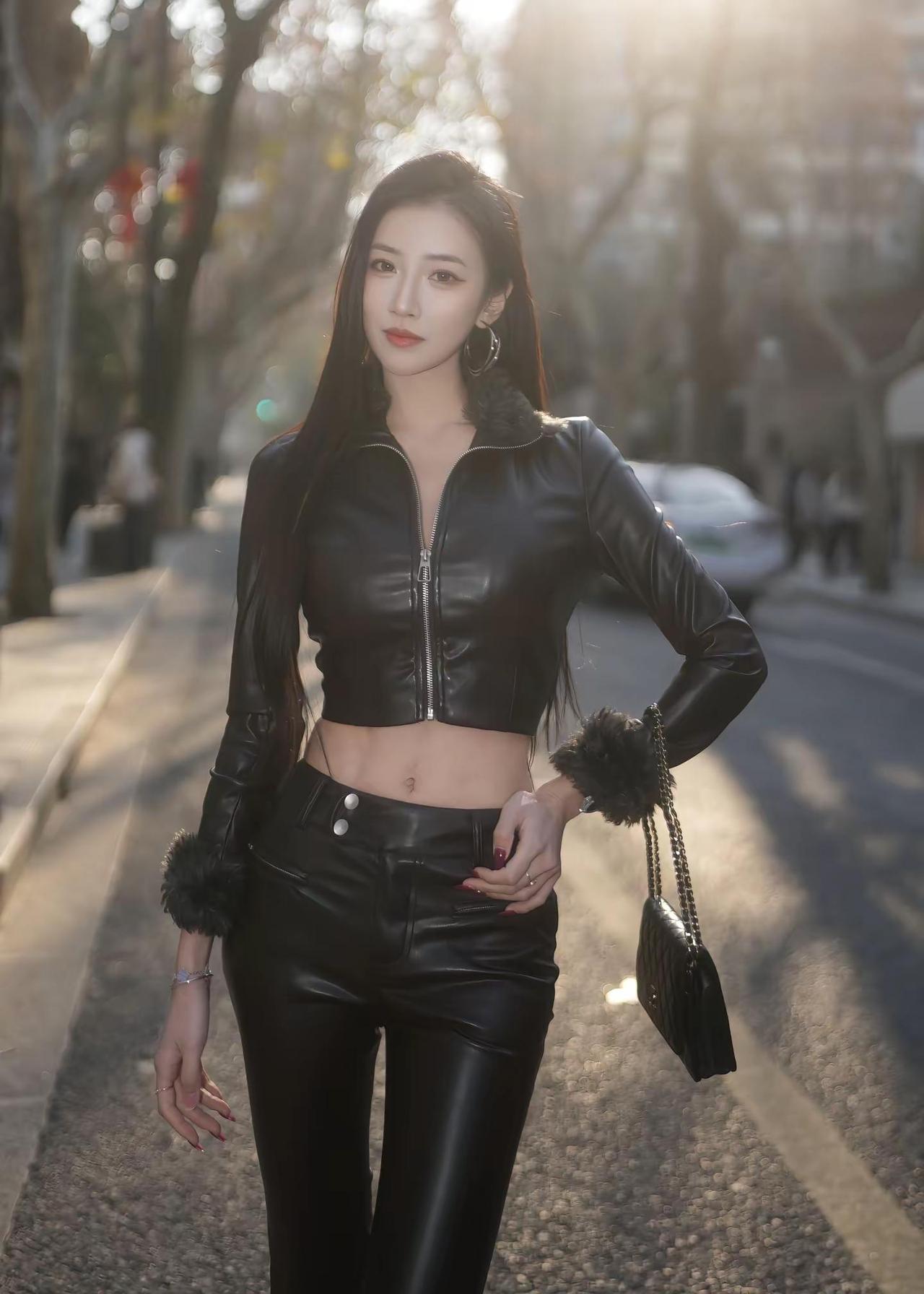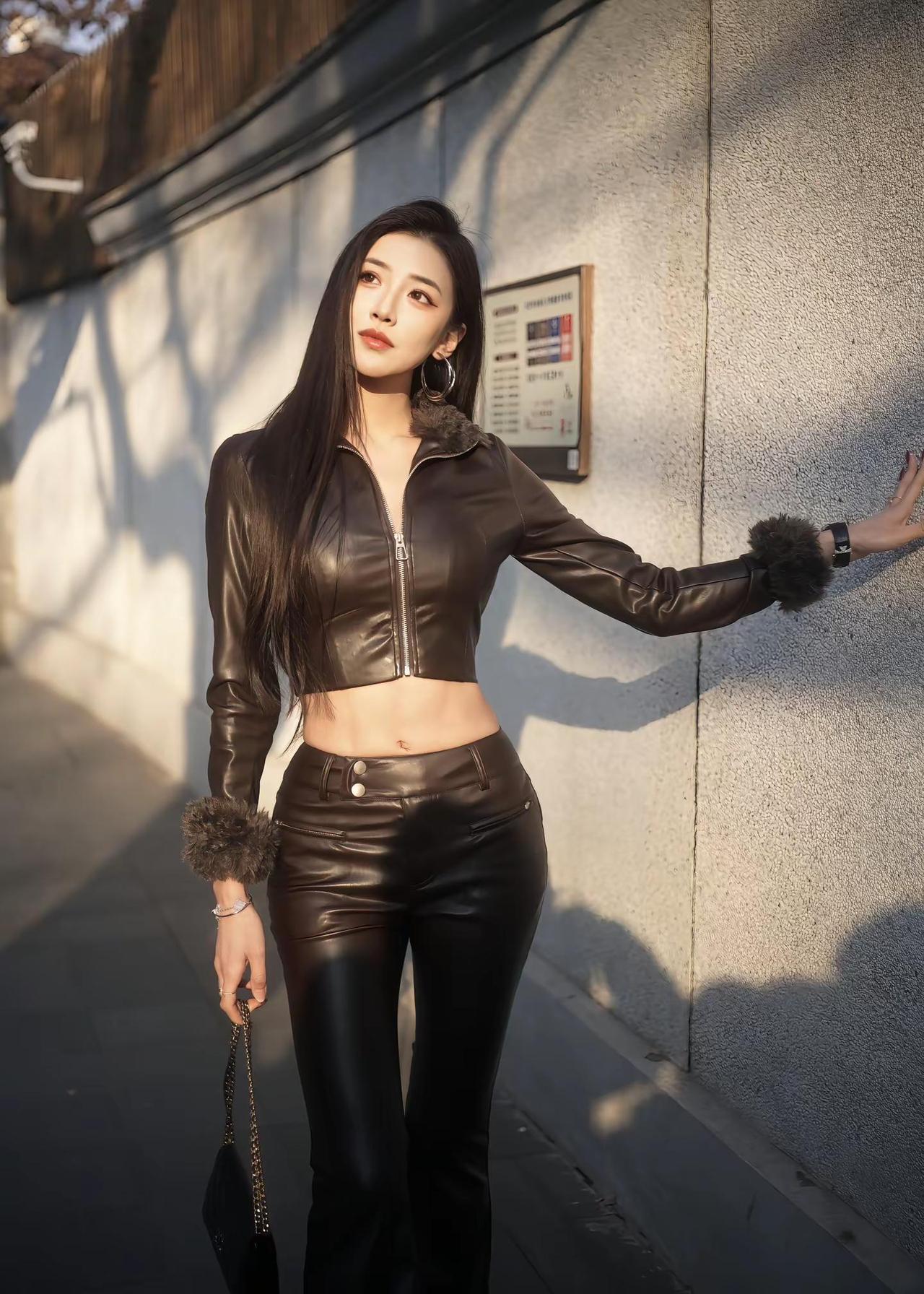 皮衣皮裤独缺大波浪