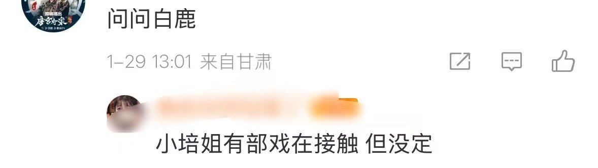 白鹿白鹿杨晓培或将合作网传白鹿在接触杨晓培的剧接好本子给🦌