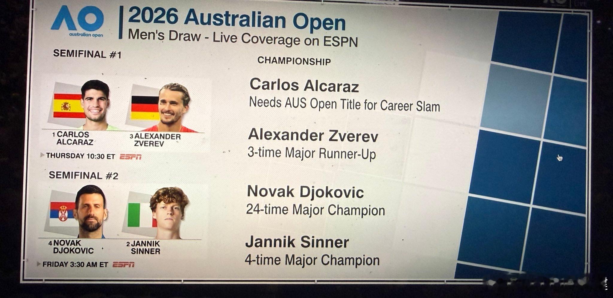 图一,兹维列夫扎心了图二是现役球员大满贯四强全记录!看看都有谁这很澳网澳网2026