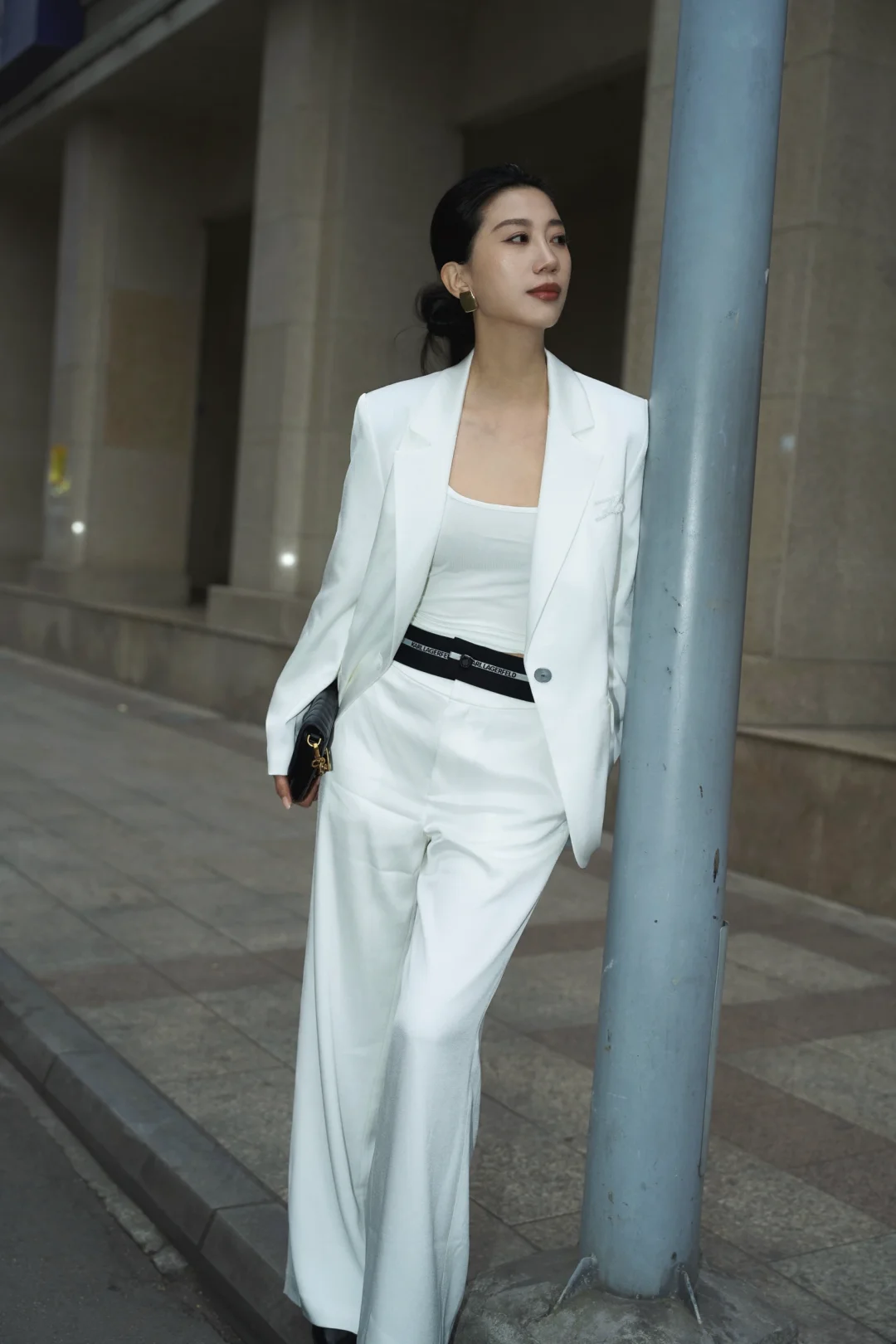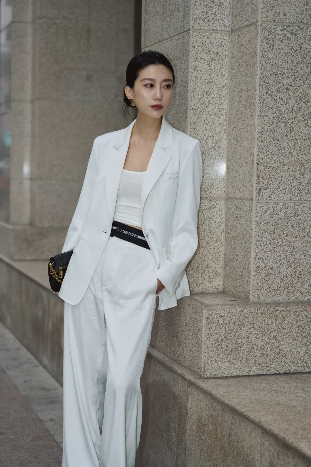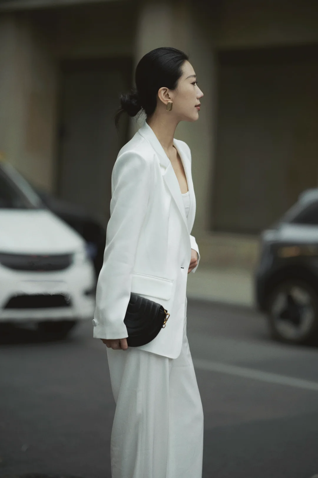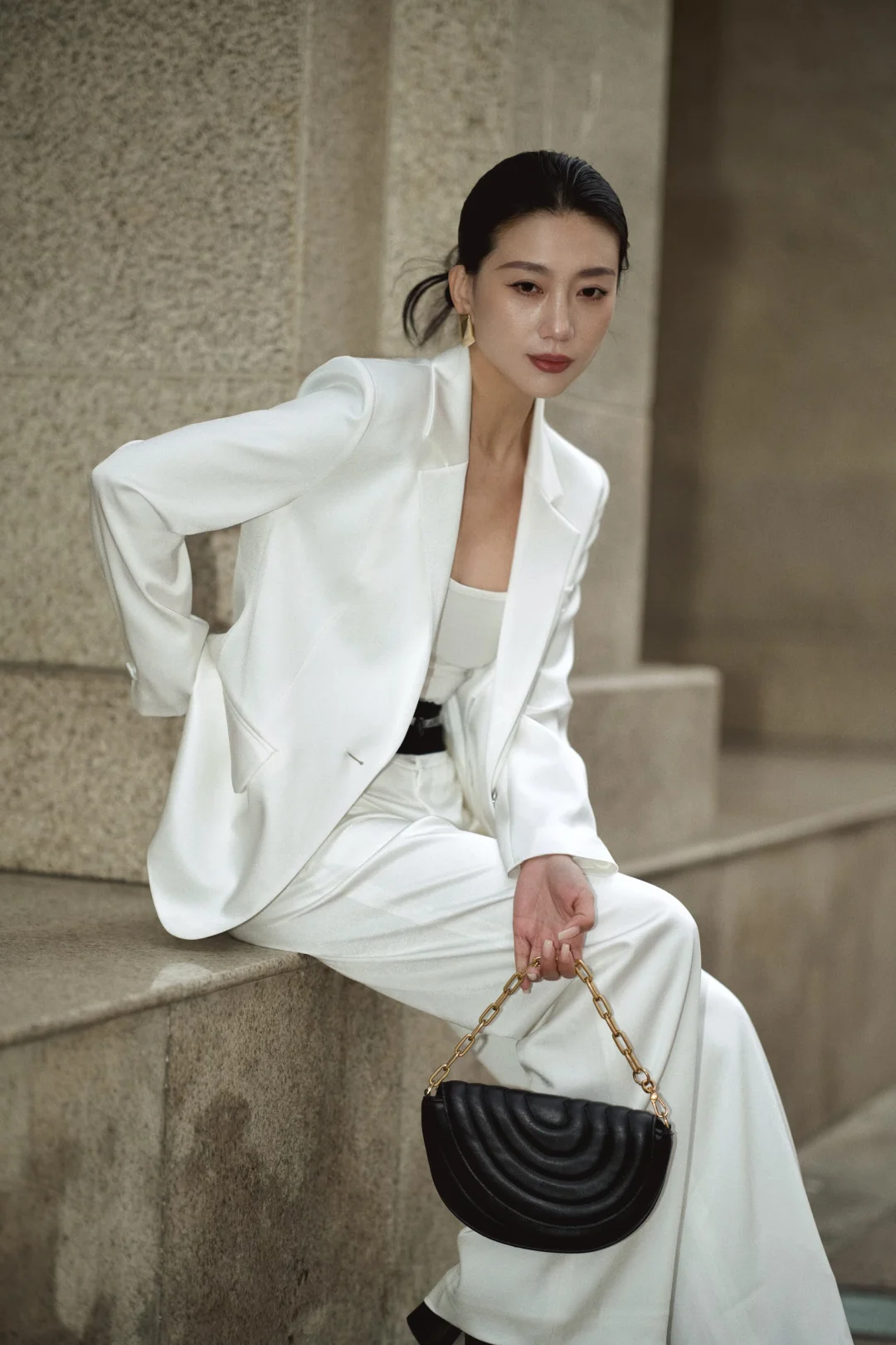 每个角色都像一件合身的衣裳,赋予我不同质感。如同这身白色西装,利落剪裁带来飒爽步伐。走在都市光影间,驻足或前行,都从容自信。
